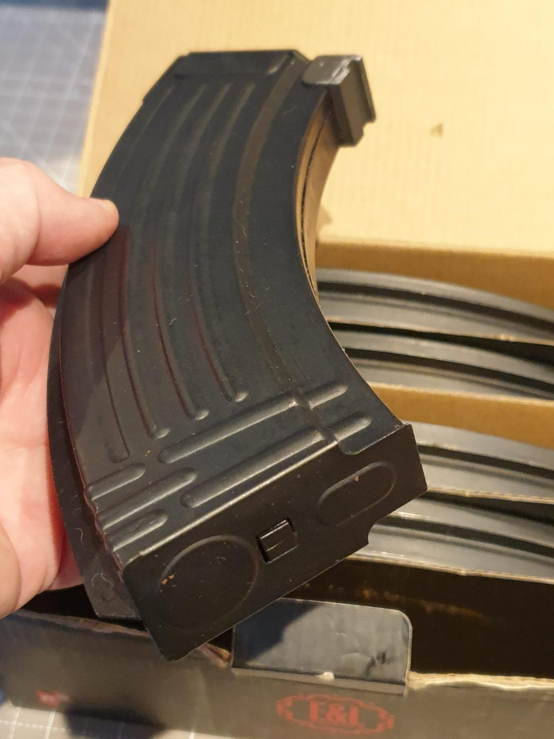 Box of E&L Metal Mid-Cap AK magazines circa 120 rounds