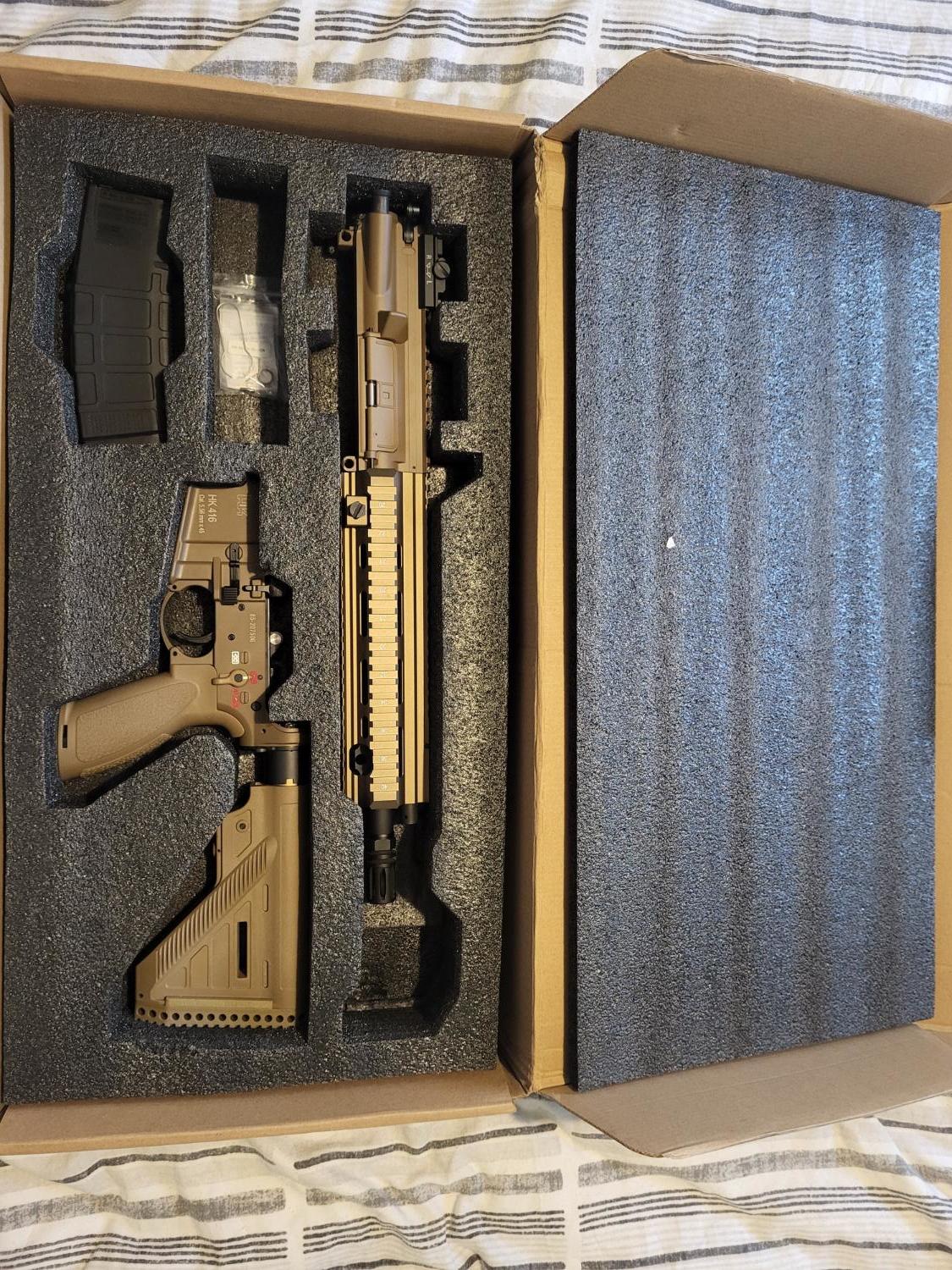 Still has the little plastic stickers covering the H&K trademarks on the stock and the heat shrink on the bolt release catch. As stated literally brand new.