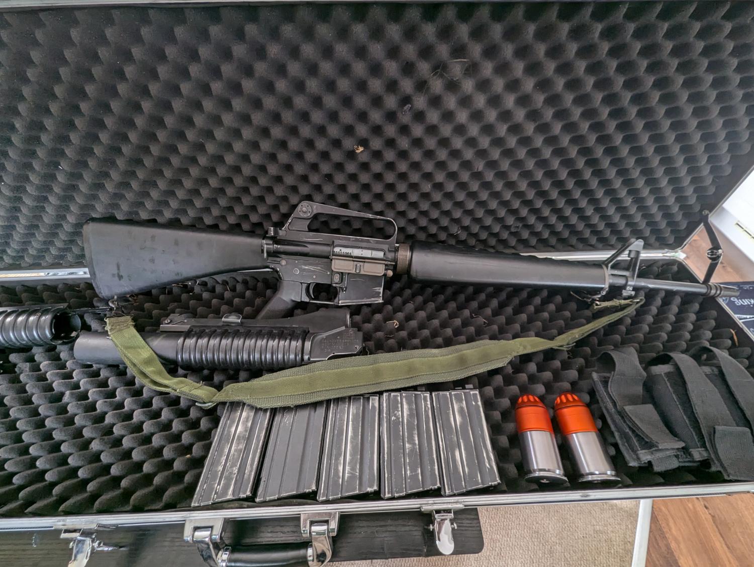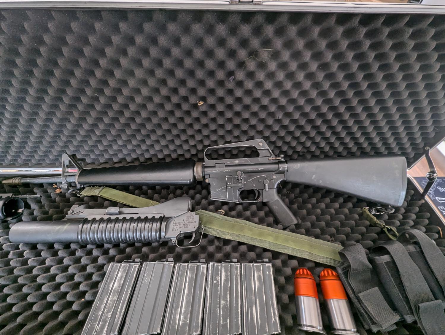 For sale is my WE M16A1 including M203 with both long and short tube, 5x 20rnd magazines, 3x 30rnd magazines and 2 moscarts & molle moscarts pouch.