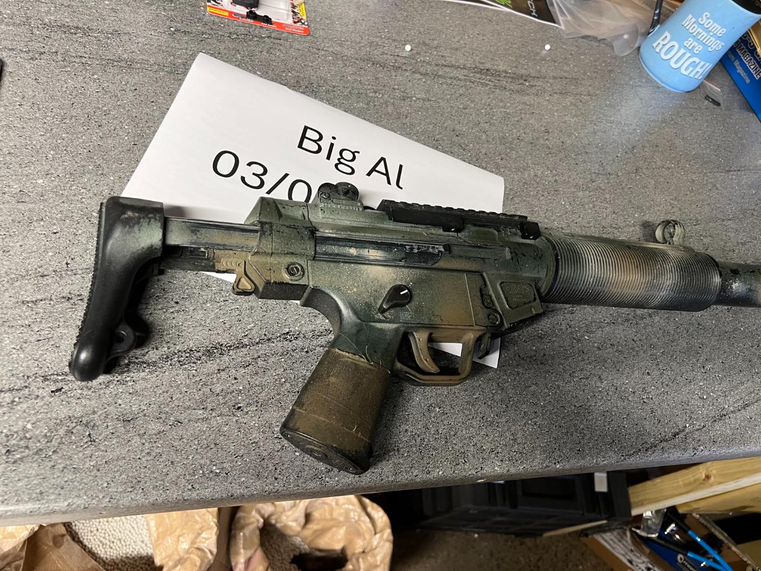 For sale is my Classic Army Brugger & Thomet marked MP5SD6.  Thi is a full metal MP5 fitted with the pictogram lower.  It is currently in BZ Tactical as it has just had a once over and been fitted with new selectors and selector cams ready for new owner.  This would make an ideal work horse / back up gun.  As you can see it is painted in a random camo job, but could easily be painted back to black for the cool tactical look. Will come with four magazines in total, though sight and light ( mount rail is included ) in picture will not be included.