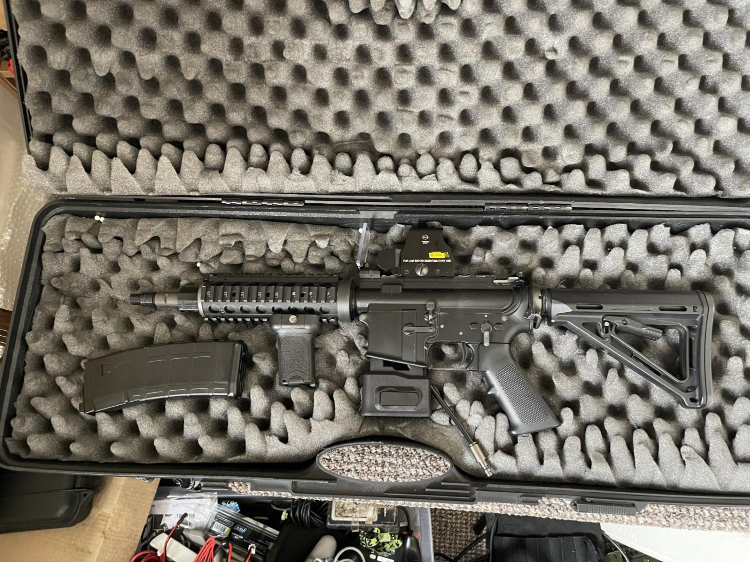 Hi thanks for looking, i have my m4 cbqr for sale , i have used it a handful of times but need the money to fund another project, i have had an npas valve fitted and a pink flamingo bucking fitted, there is a small amount of usual wear and tear marks on the gun which you would expect , i have removed the front iron sight and 3d printed a "gas block" to hold the hand guard on , it just needs 2 grub screws to secure it in place properly ,but i will include the original iron sight with the gun anyway, and i have also 3d printed a thread adapter as the outer barrel is a c/w thread and most stuff now is a ccw thread, you can buy metal thread adapters but when i was looking for one there wasnt any in stock anywhere.