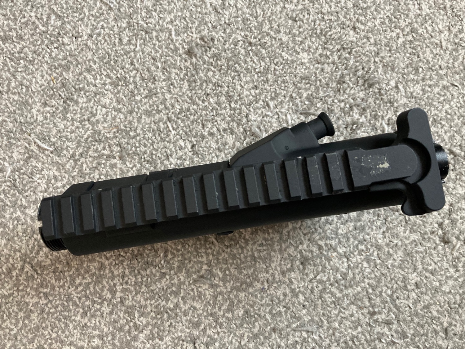 has had new charging handle added (this doesn’t move as it’s tight fit however the original didn’t do anything either as the dust cover must be pulled down to expose the hop up)