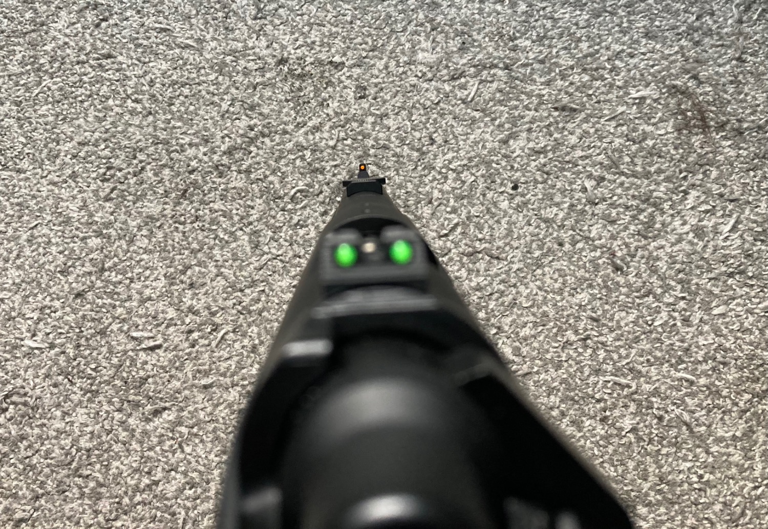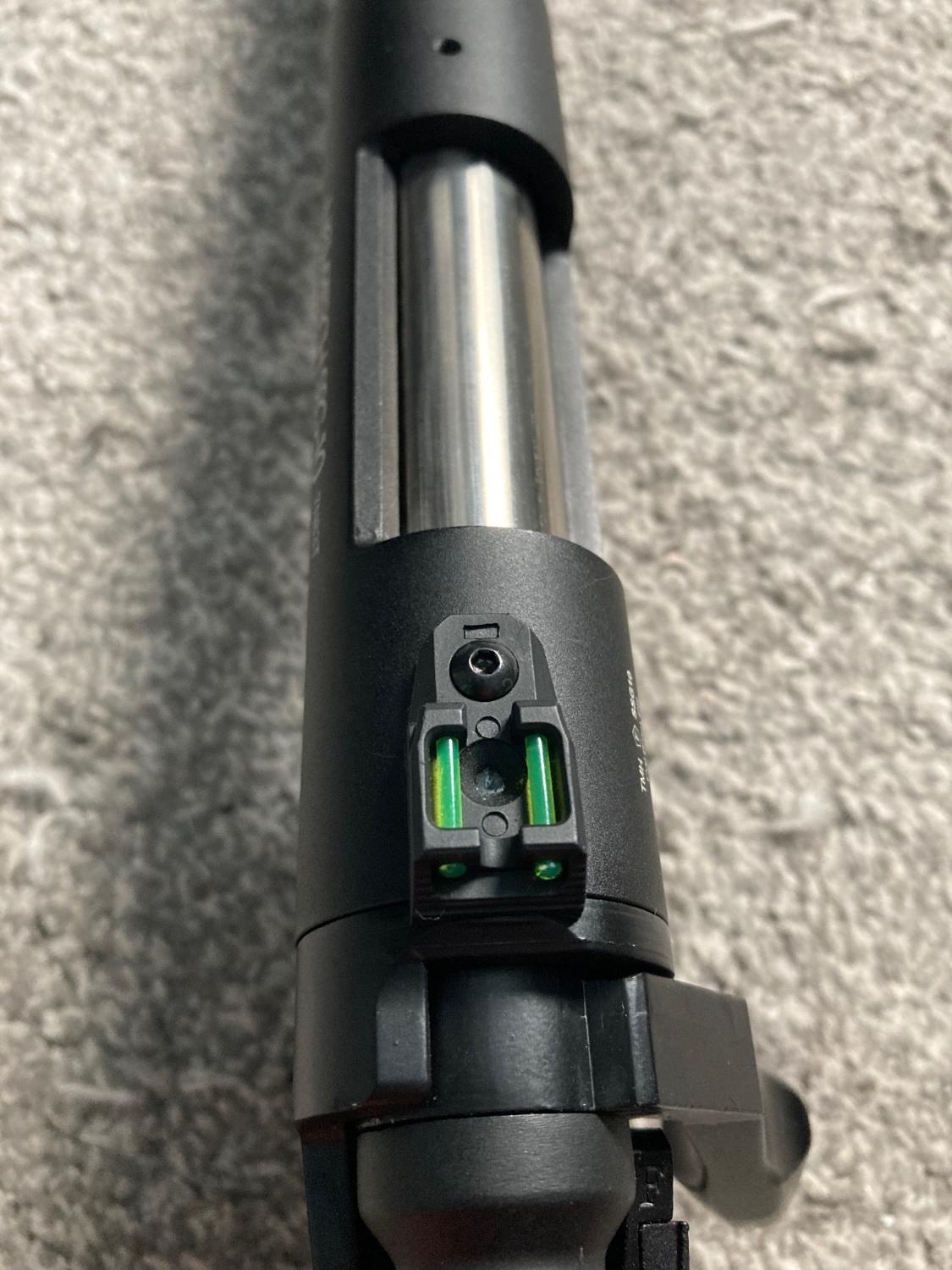 rear fibre optic iron sight (this screws into second screw hole from rear and includes small screw to add under which holds rear section of Reciever together, 3M extra strong double sided tape also attatched to underside of sight for extra security)