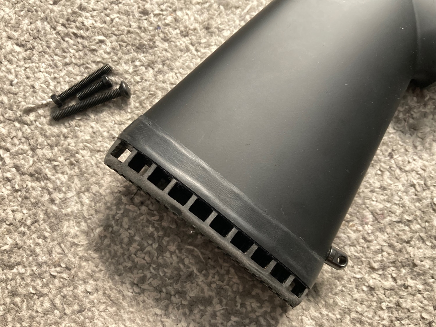 cut down SSG stock with rear but pad glued on and rubber cover wrapping