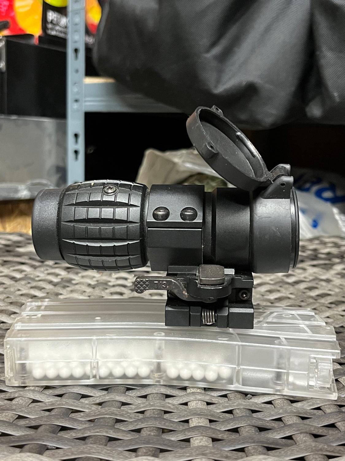 For sale is a 3x sight magnifier with flip to side (FTS) mount,lens cover and hard case. Good condition ,picture is clear with no anomalies. Selling due to not having used in quite a while.