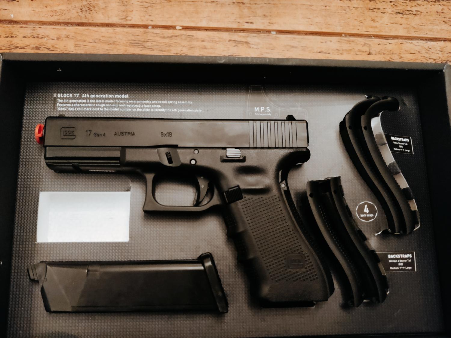 Here I have a stock TM G17 Gen 4 GBBP really clean only used a couple of times stored in the box. In fully working order. It's comes with 5 mags 4 are gas tight one leaking. 2 of the mags are TM, one army, one WE and one raven mag which is the leaking one was purchased in November 2023 from New and has seen one skirmish and been put back in the box. I just don't have time to play anymore hence the sale.
