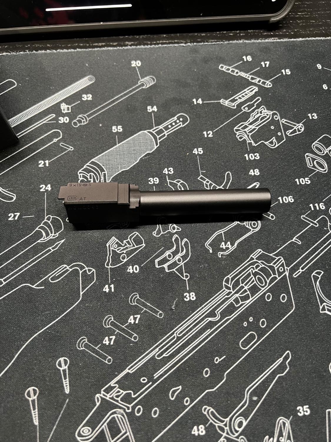 The slide and barrel are immaculate as they were fitted but never used. That being said, the slide isn’t “perfect”. The screw that holds the steel slide stop place has sheered, meaning that you will have to super glue the slide stop plate in place instead of securing it with a screw.