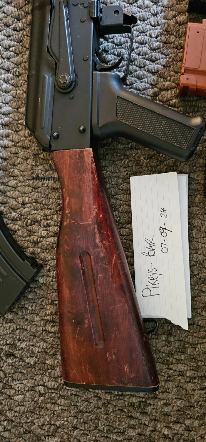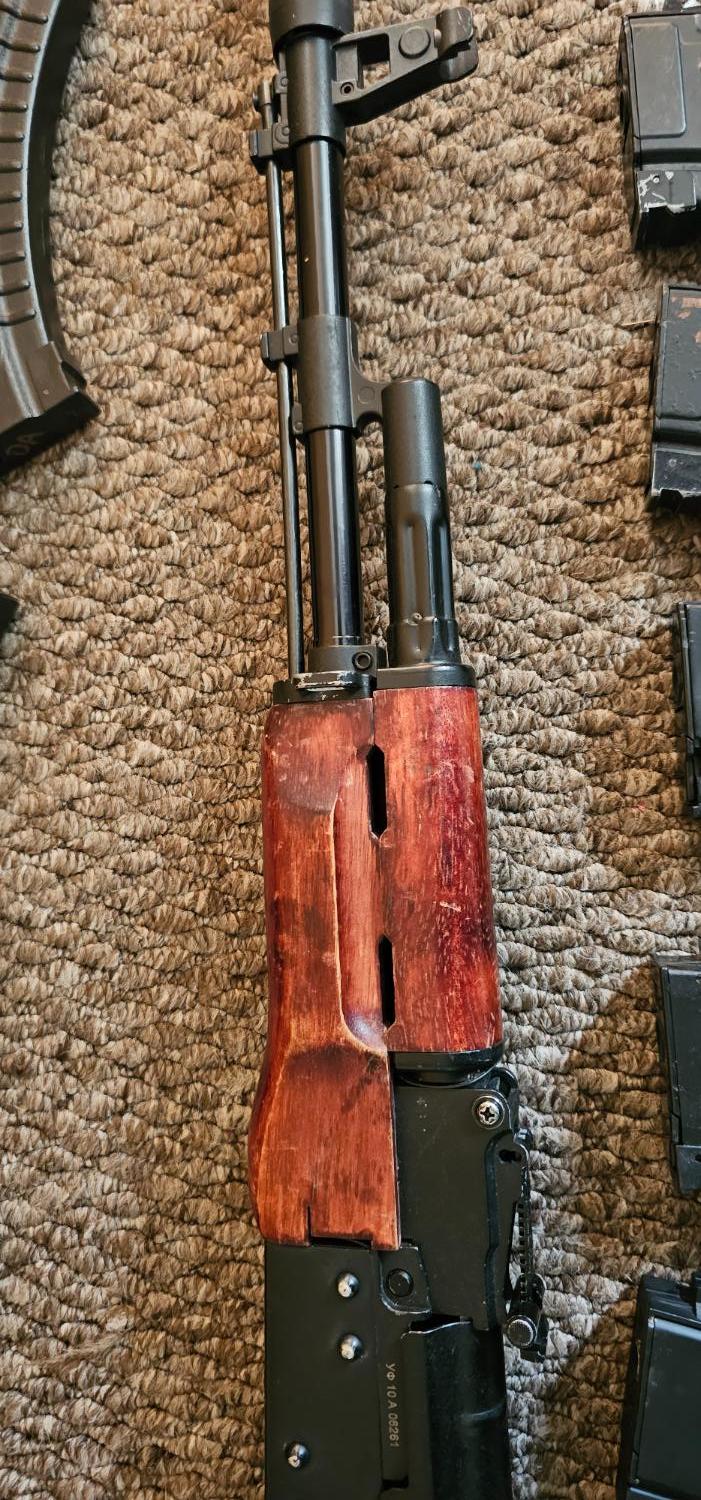 Here is my very trustworthy Ebb ak74 owned for about 12 years or more and has never missed a beat. ( i cant remeber make sorry) full metal and wood construction, marked but its an ak isnt supposed to be shiny like an ar. Oy selling as leaving airsoft.