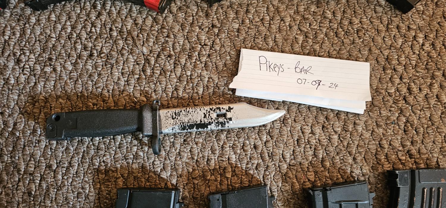 Further to all the mags when empty there is the rubber baynet. ( had been painted but flaked in use.