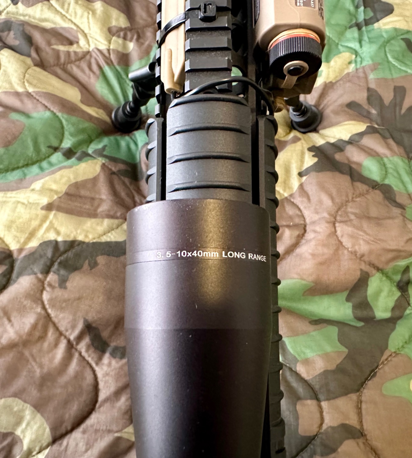 Replica Leupold MK4 M3 turret 3.5-10x40. Good for a GWOT clone.
