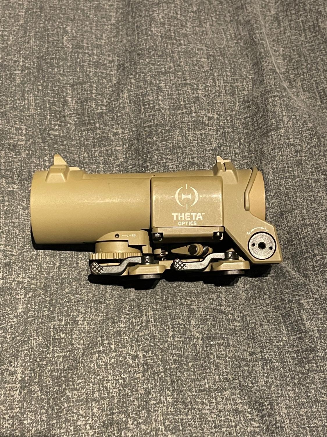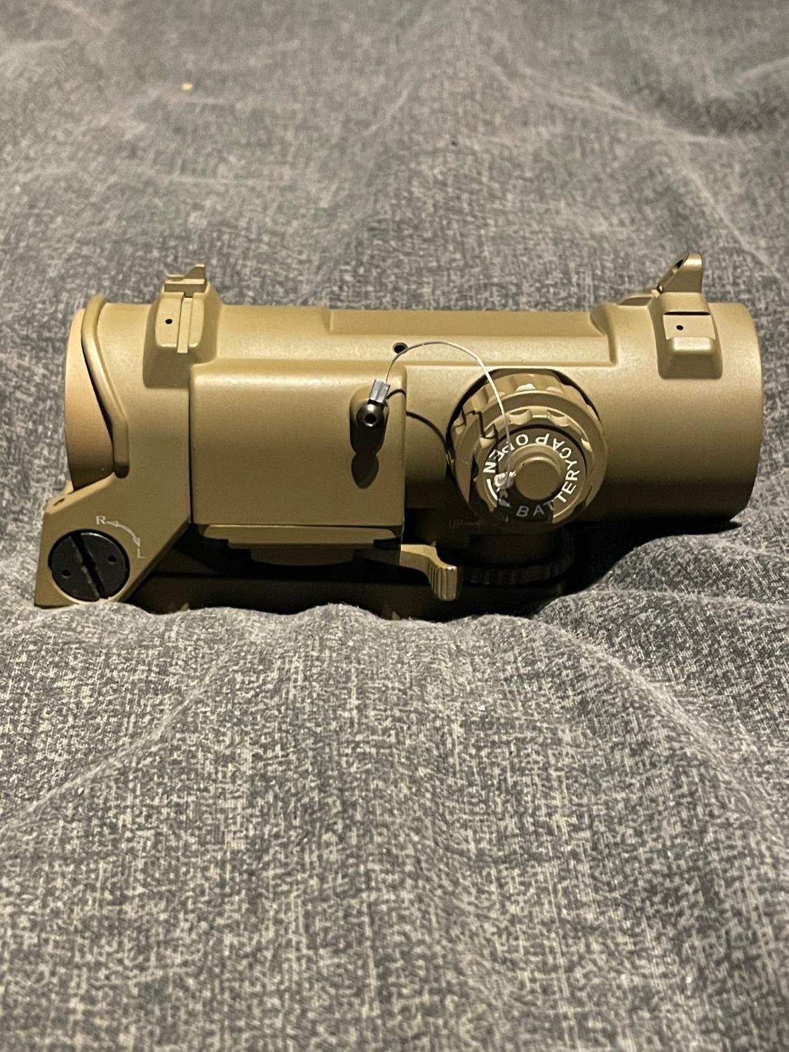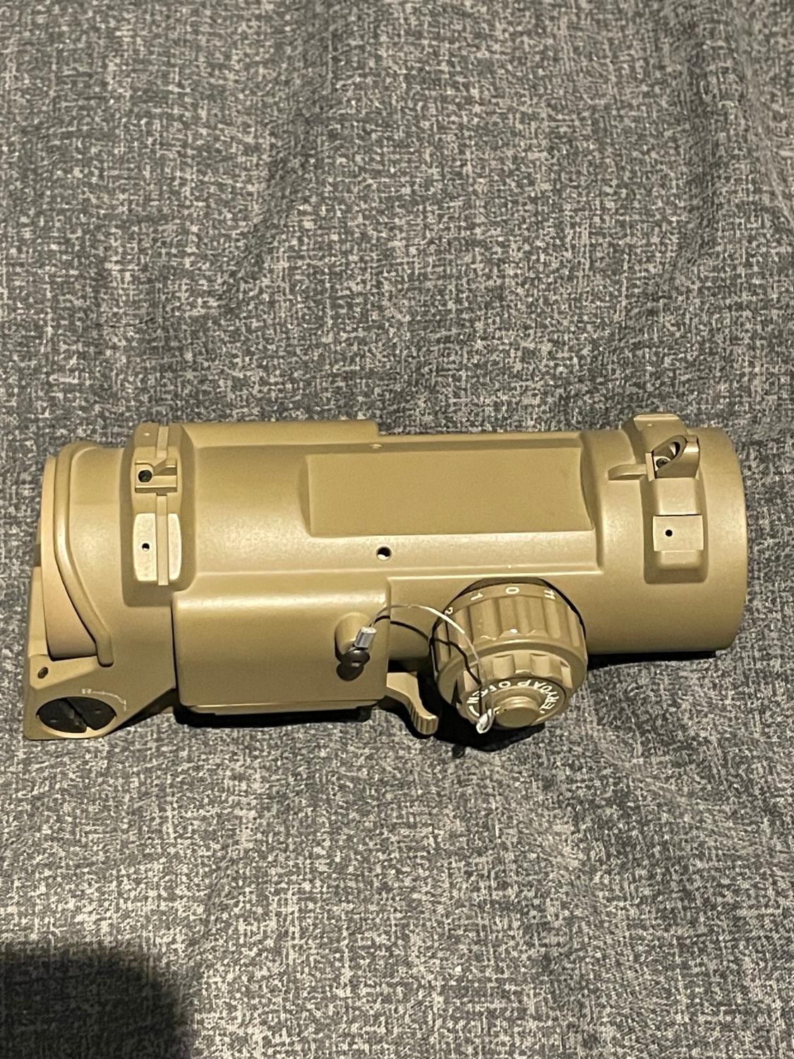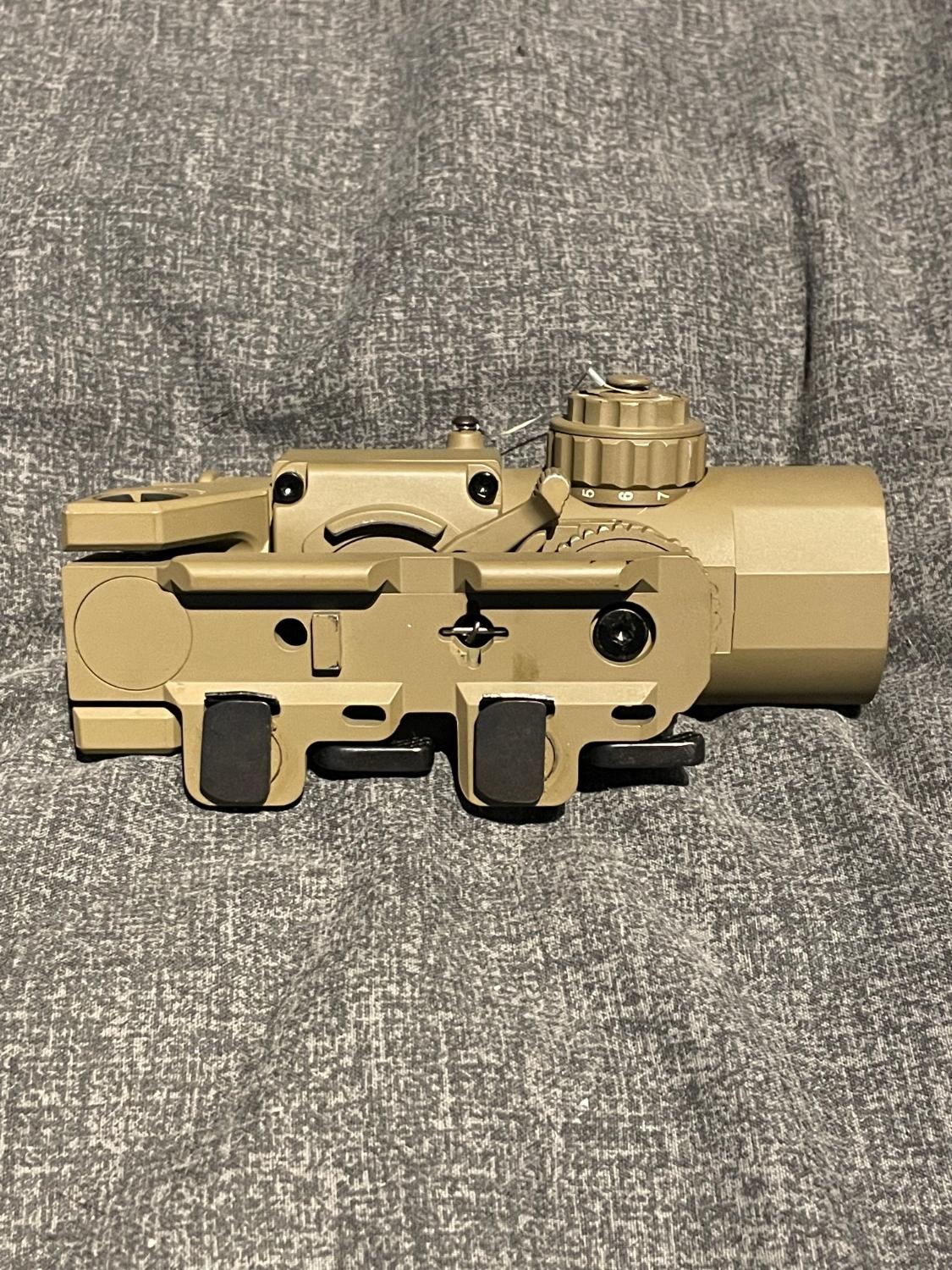 This is a fixed 4x optic with back up sights and means of mounting a rail on top. Adjustable elevation, RL. Looked great on my Scar H
