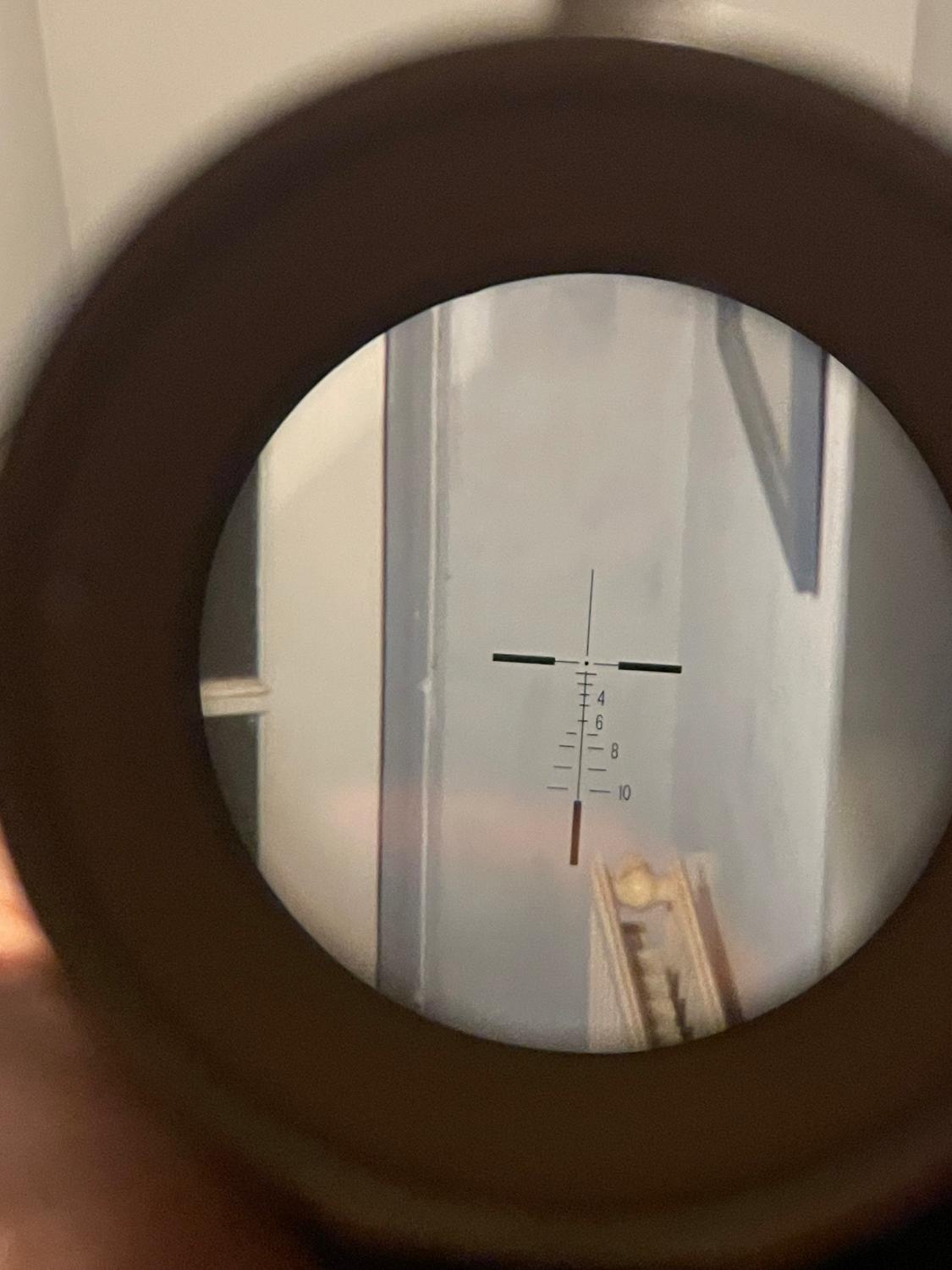 No major marks or chips with amazing eye relief and a clean optic. Purchased a year ago from DCA