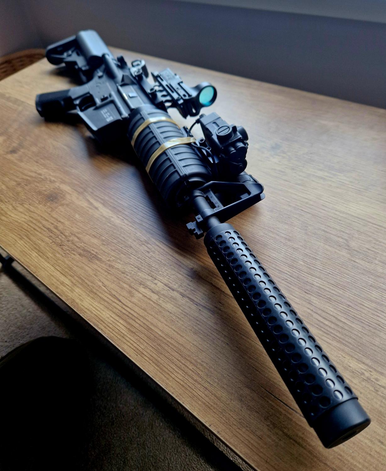 Added a CMORE RDS with mount, DBAL, Chinasoft Surpressor and BUIS for added tacticoolness.
