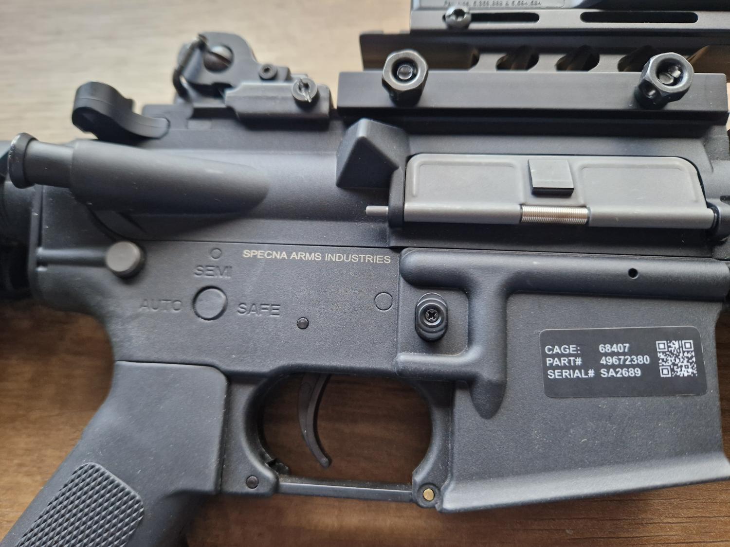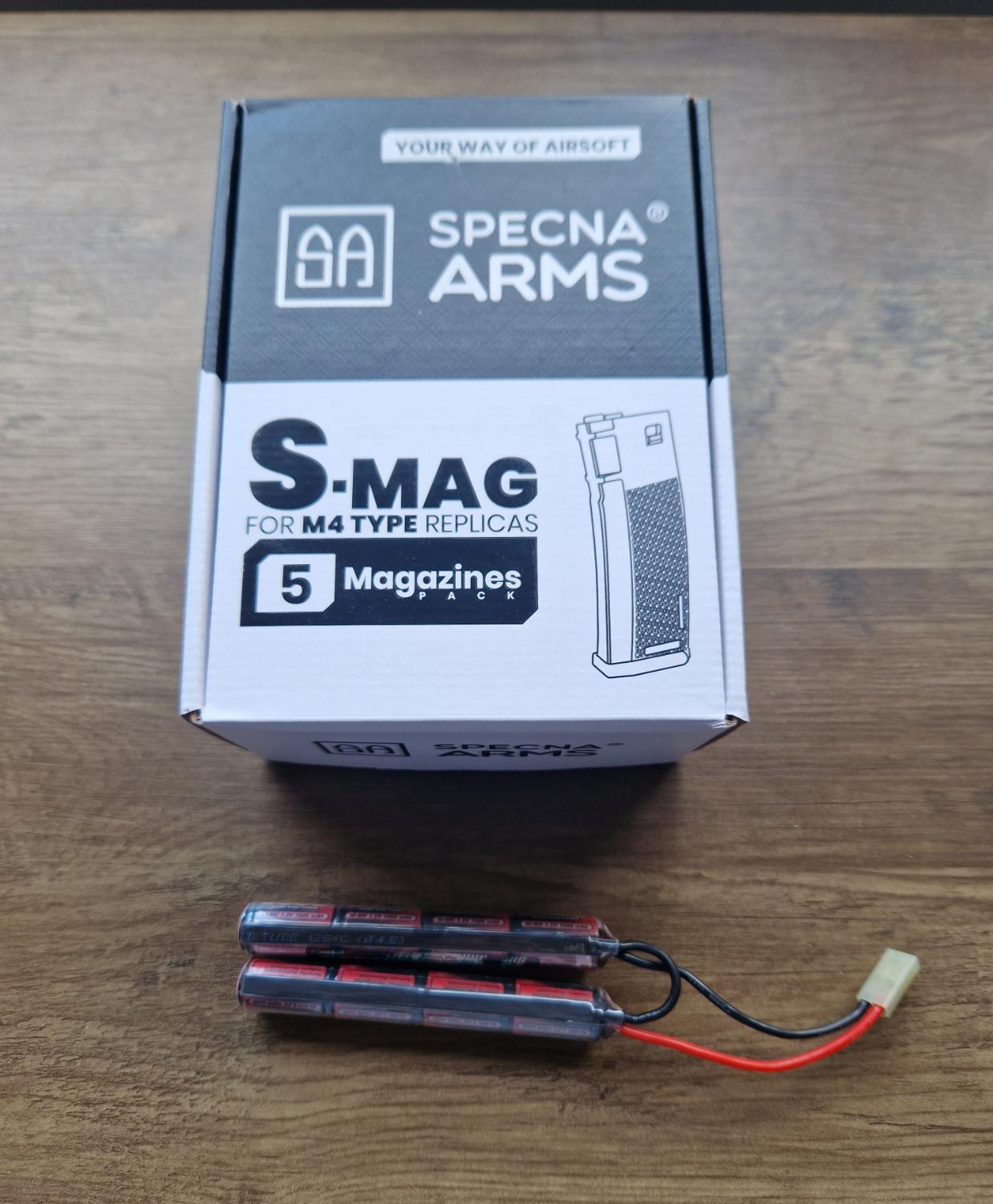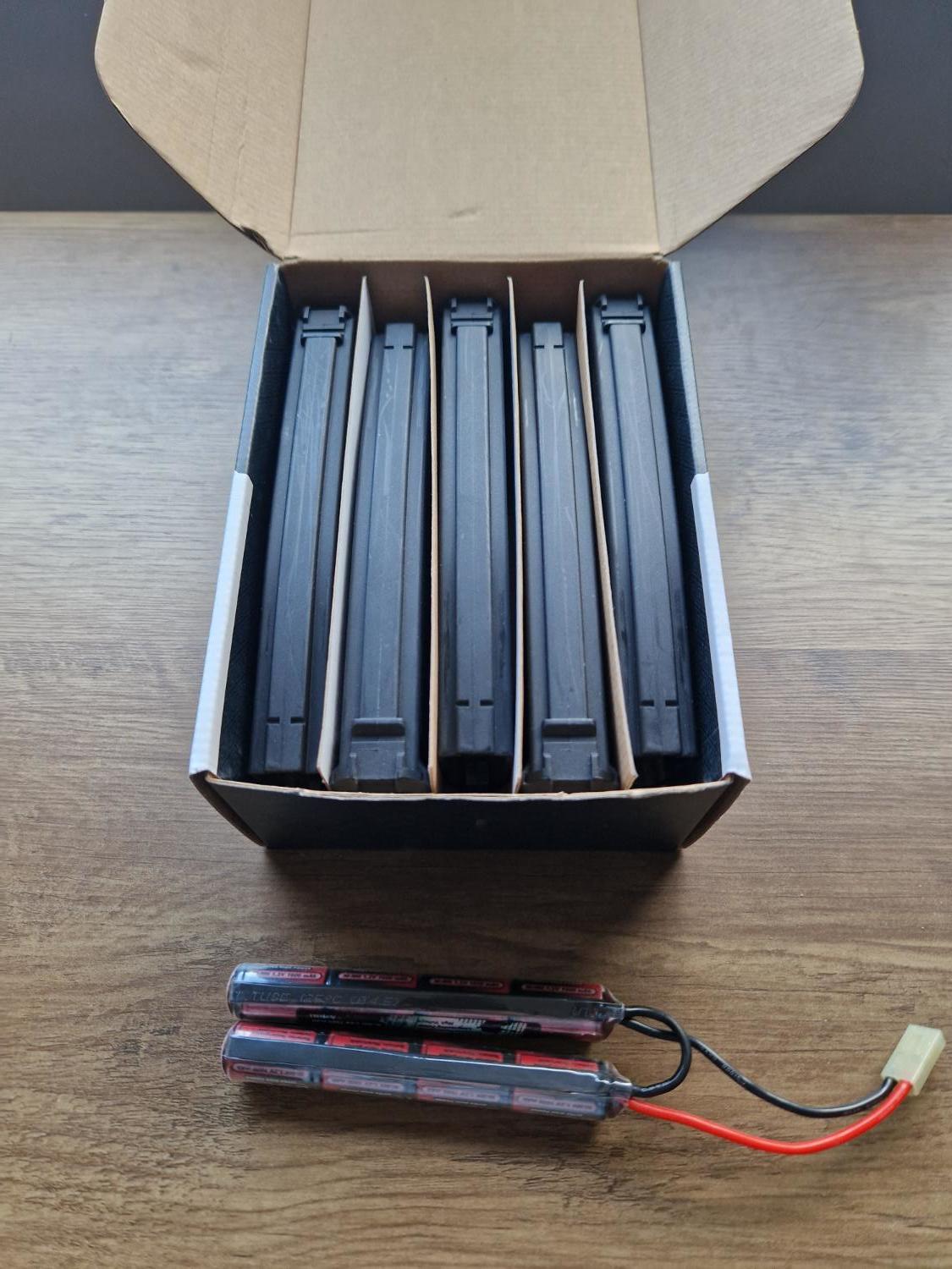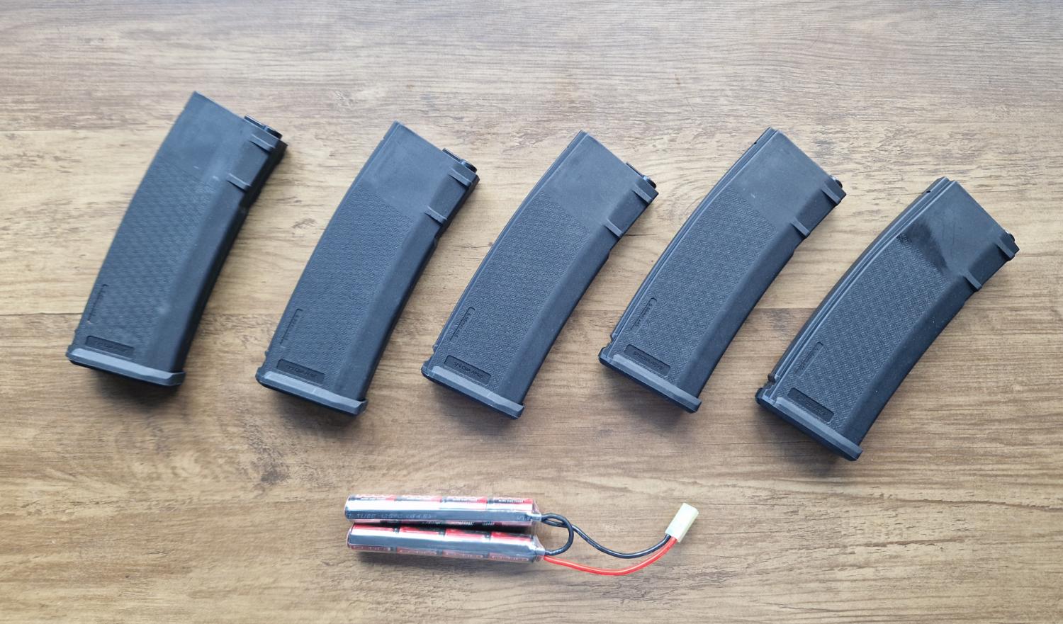 Comes with standard nunchuck battery and a box of Specna S Mag Mid Caps : these have been handled, placed/removed from my rig but have never been filled with BB's so are pristine internally.