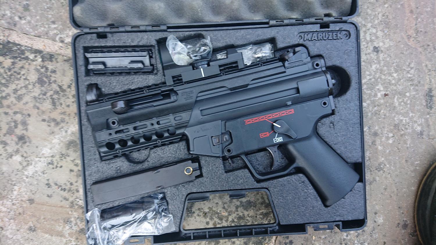 Price includes postage and paypal fees. A maruzen mp5k that looks to be entirely new. Works as it should and comes with 1 short mag, a flash hider, a red dot (untested) and some side rail pieces. As well as the fitted case.