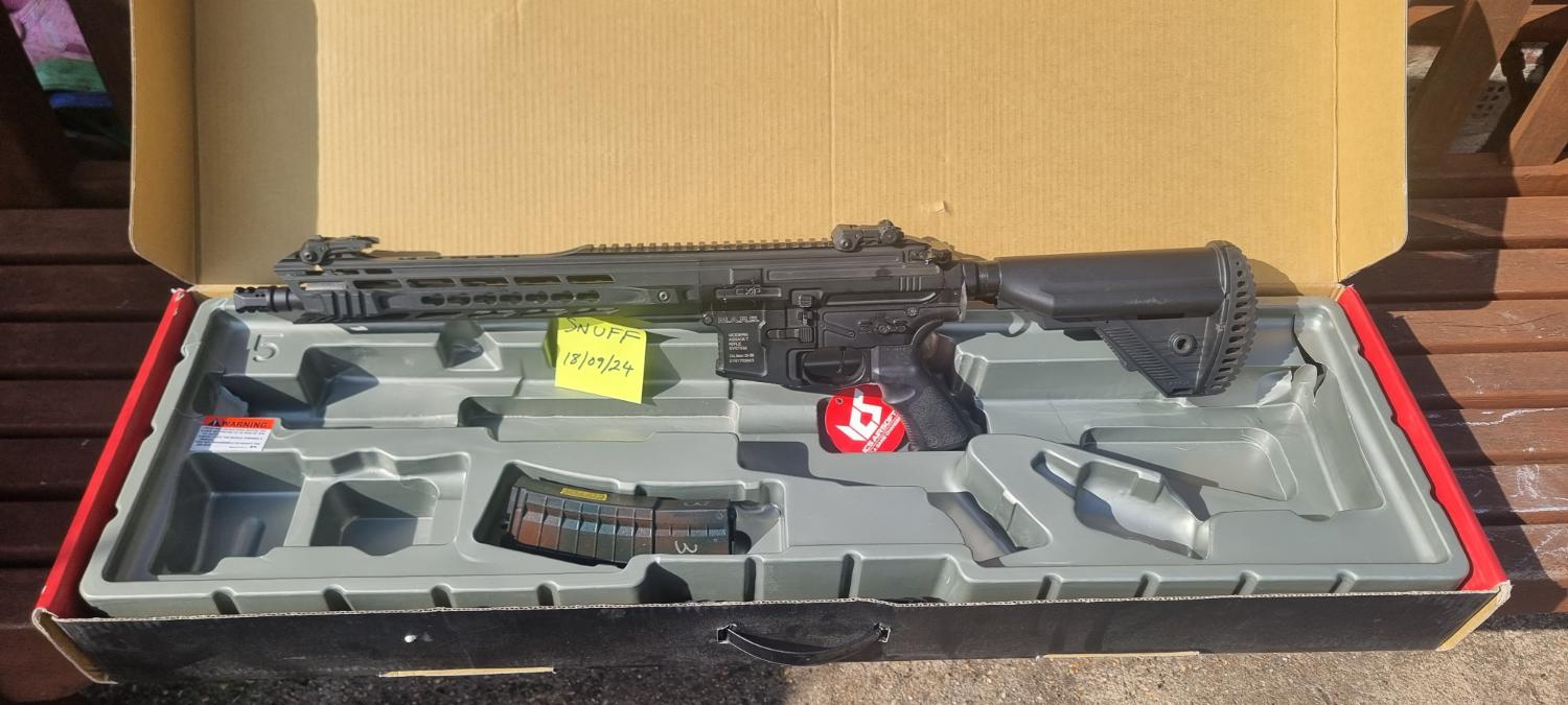 Chronoed consistently well on .3's (18/09/2024),Deans connector for the battery,will come boxed with 1 hi-cap mag,the stock was changed to accomodate bigger,better battery choice.No battery included.Collection or post via PF only unless the buyer insists on cheaper delivery...