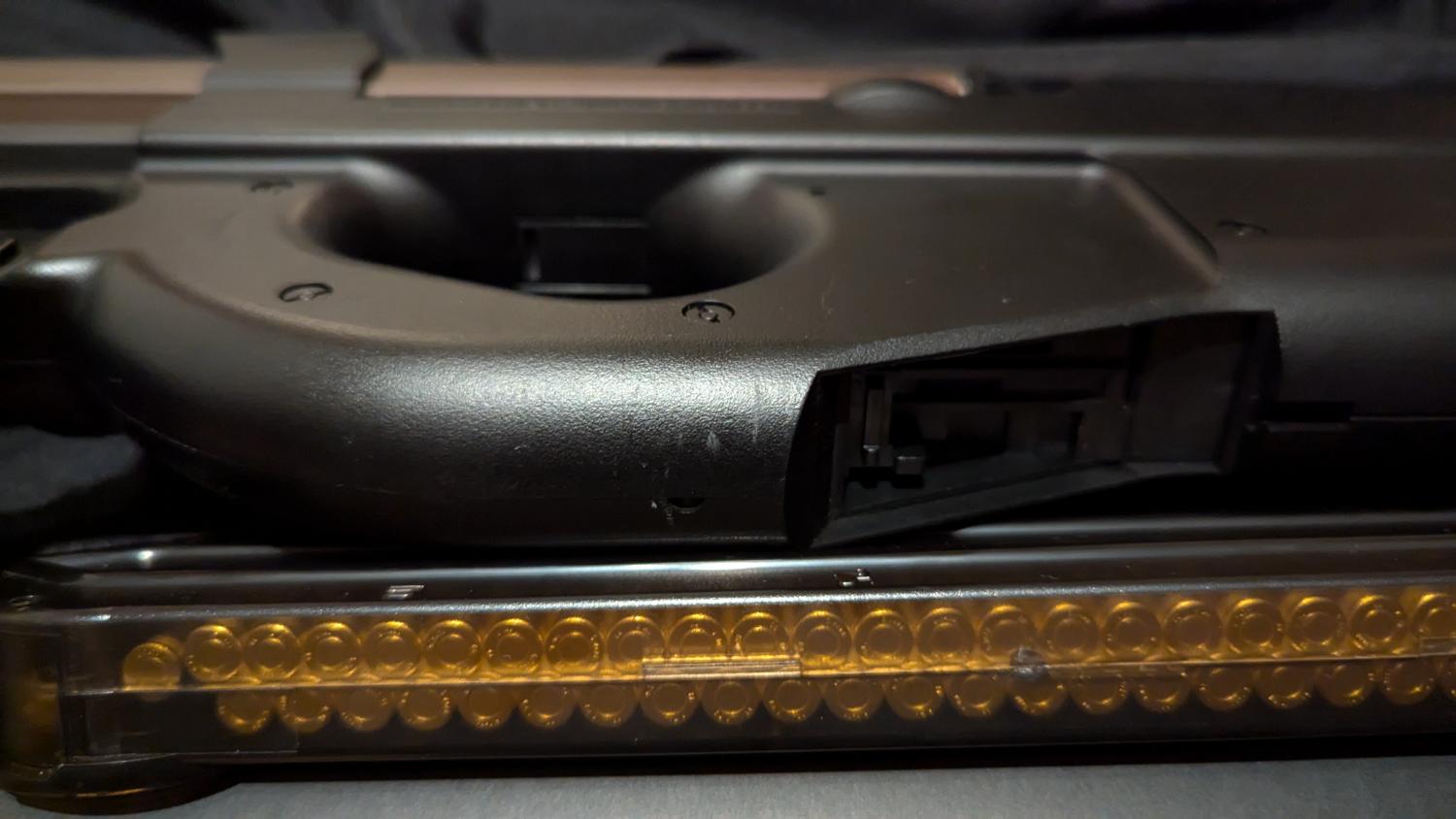 Being the plus model, this comes stock with TM's MOSFET, same MOSFET used in the MP5 NGRS. This gives it a really good response on the trigger and doesn't have that mushy feel you get on standard P90's. The MAG magazines are considered the best on the market for the P90 and have fed bb's without issue.