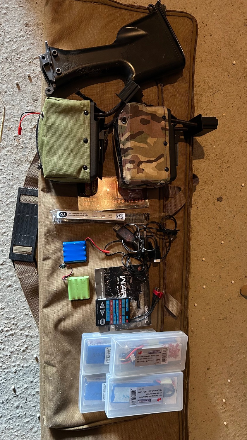 2x Nutsac style box magazines with spare batteries.