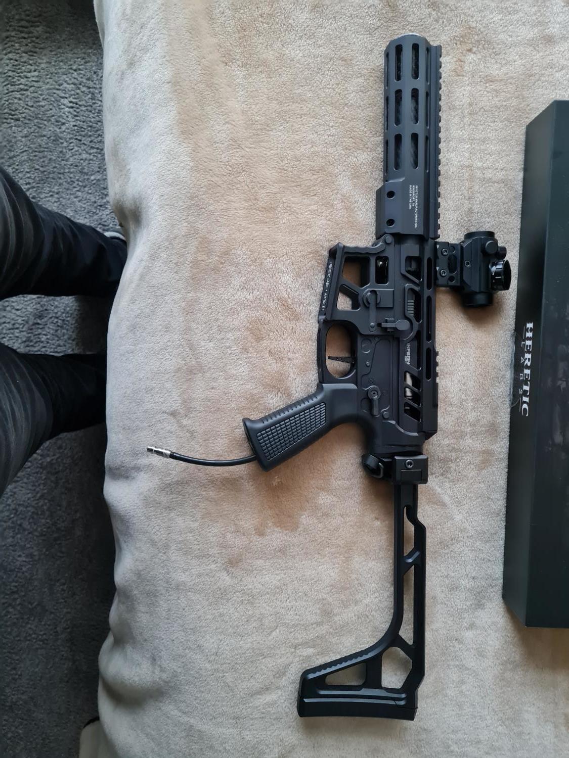 Comes with genuine wolverine hanguard 7" new, laylax folding stock new, pts quick release sling point.