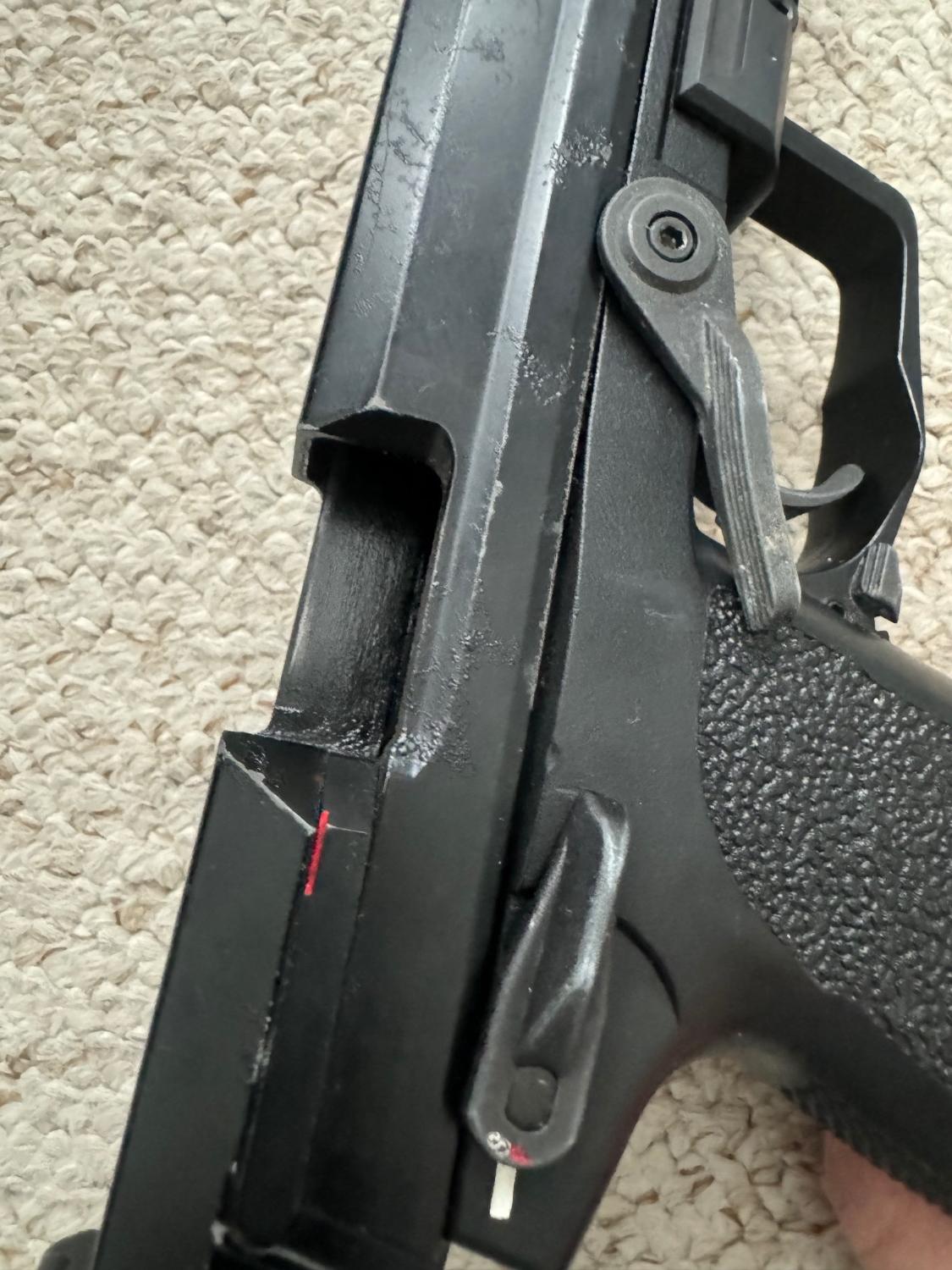 1) Right side slide catch broken - metal teeth that locate into the left slide catch inside have broken off. The left side works fine so the slide still functions properly as long as you’re not left handed!)