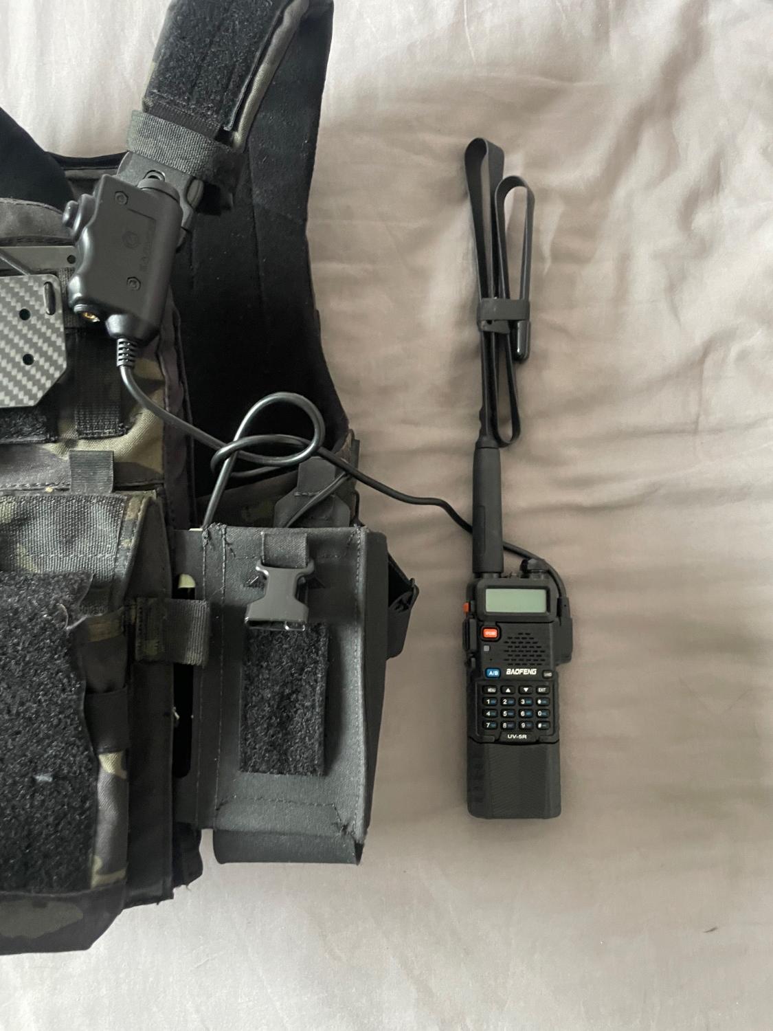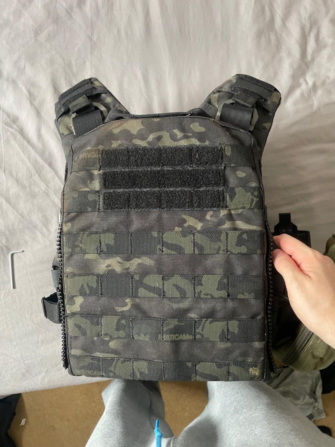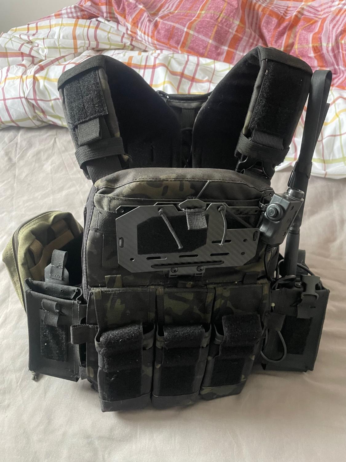 Selling my TMC AVS in multicam black, it runs good with foam plates. Hasn’t got any noticeable damage, just slight dirt marks. It comes with everything seen including a brand new UV5R radio with a whip antenna and PTT. I will include the charger and original antenna as well. I will also include a TMC gen 1 banger panel which zips onto the avs rear panel. great for hauling smoke/flash bangs.