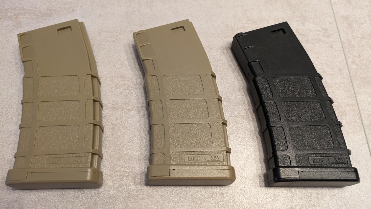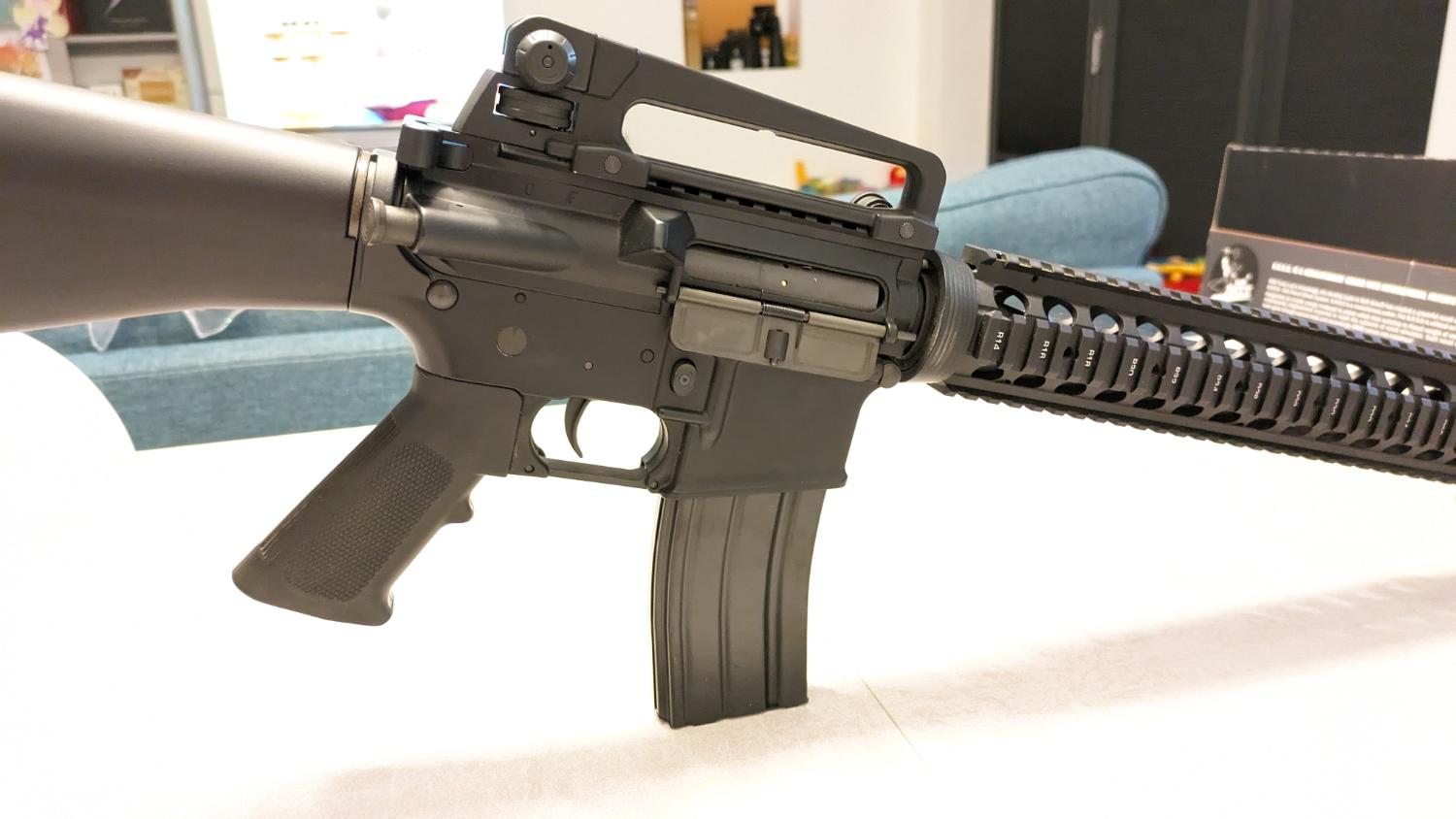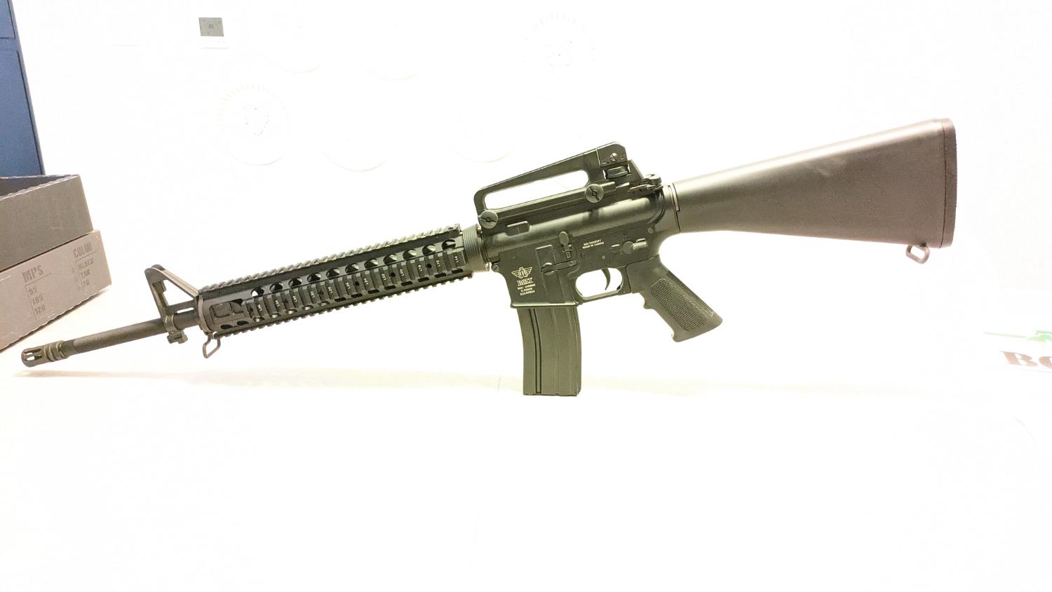 We have here a Bolt M16A4 EBB (Electric Blow Back) with 3 midcaps and 2 x 1000mah 11.1 15c liPo batteries complete with a charger.