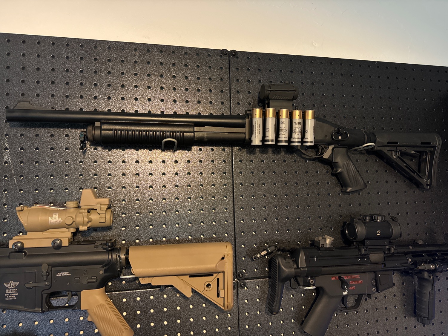 Boxed TM M870. Alpha Parts gas stock tube. 4x extra TM shot shells. Magpul crane stock. M4 pistol grip. QD rear sling swivel. Magazine tube replacement sling swivel cap.