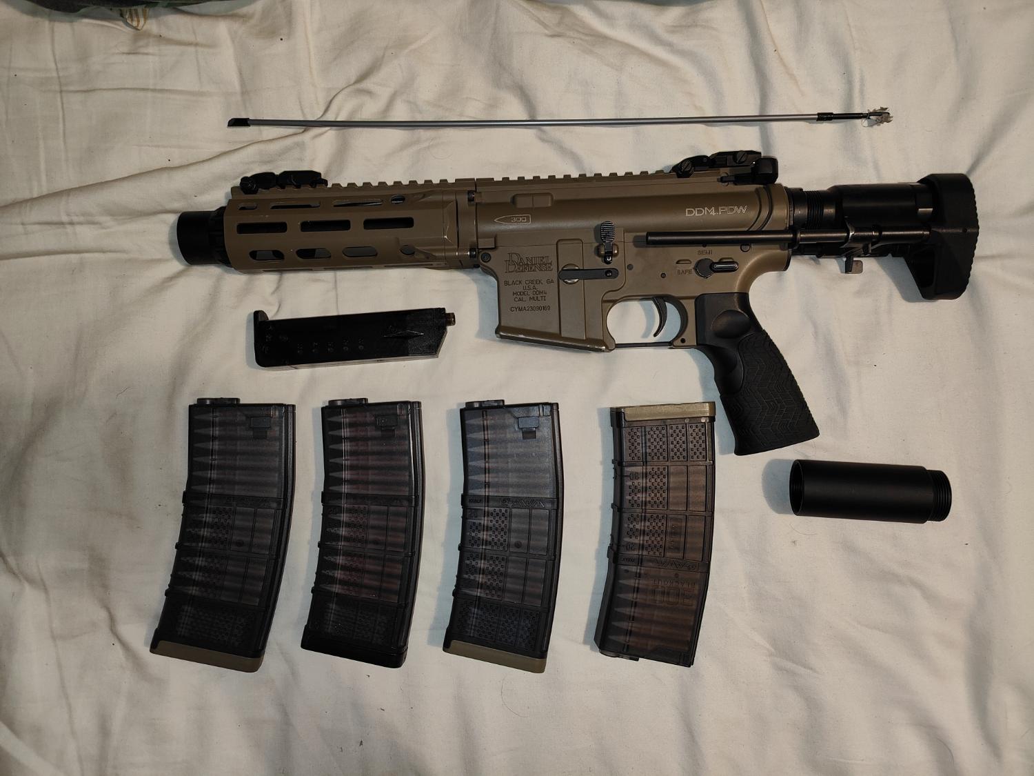 I have an pts enhanced stock and 6 position stock tube for sale separately that I ran on this, as well as a foregrip and 7.4v 6000mha titan battery I can do a deal on