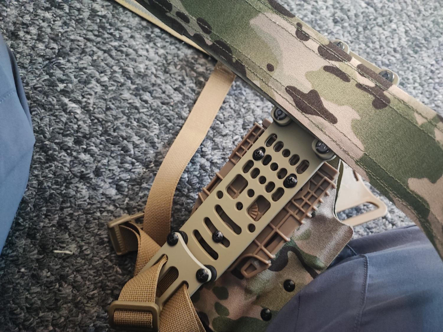 With kywi 2+2 pouches, generic tourqet, deadly customs universal x300 retention holster (also works with Olight pl pistol torch I will be selling)