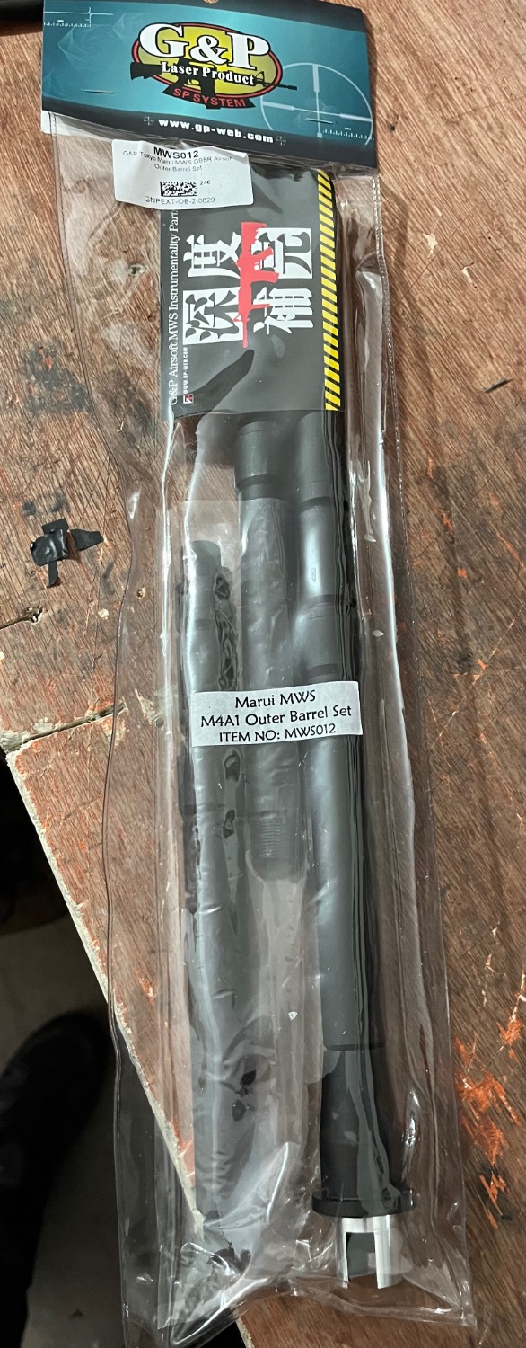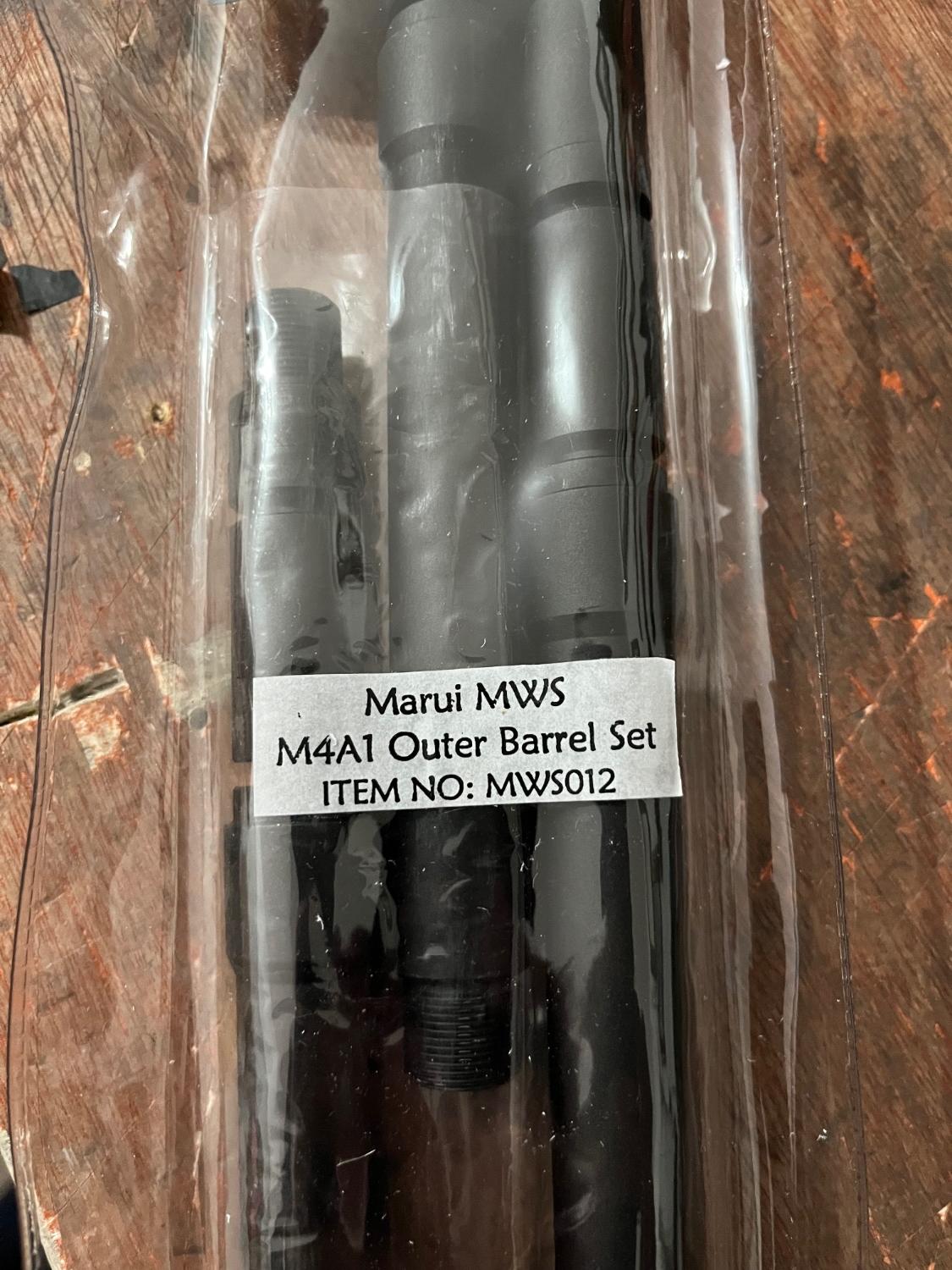 Out barrel set for tokyo marui mws m4, three different barrel lengths so you can vary your build set up. Barrels full metal construction. Brand new packet not been open. Bought so i could convert my mk18 mod0 to an m4a1 but decided not to bother.