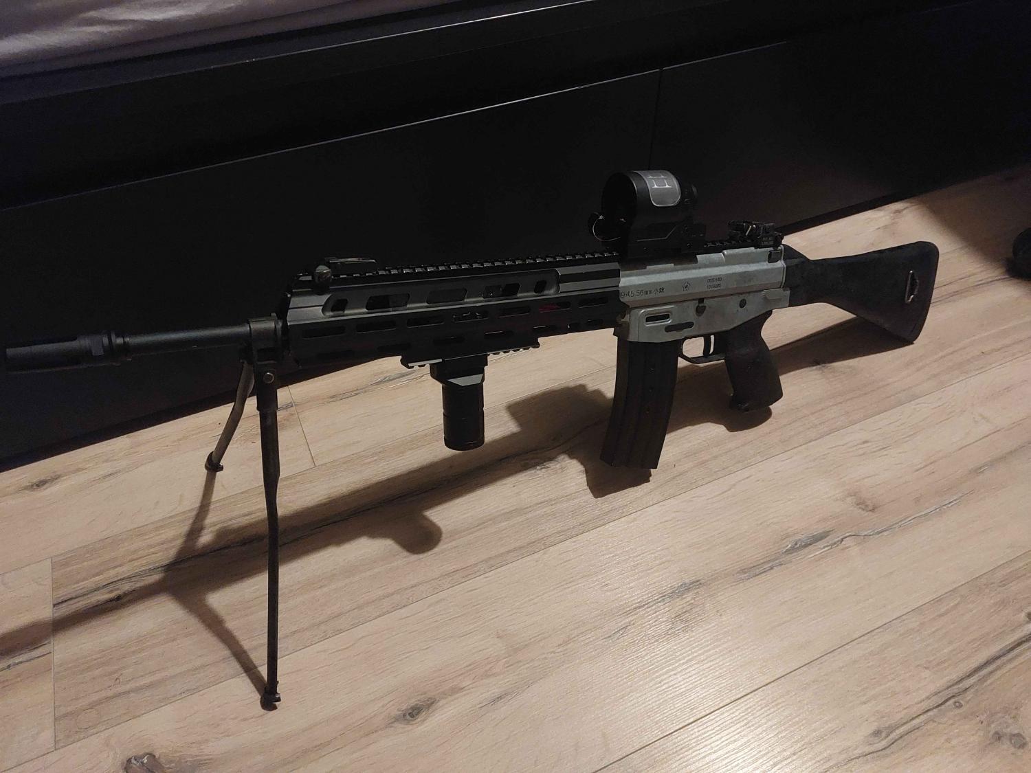 Additional Accessories: LayLax two piece metal hand guard and rails Custom two-tone finish Mechanical three-round burst gearbox Original Japanese fire selector indicators Original BUIS and Integrated Bipod Gate Warfet Mosfet Retro arms 6.01