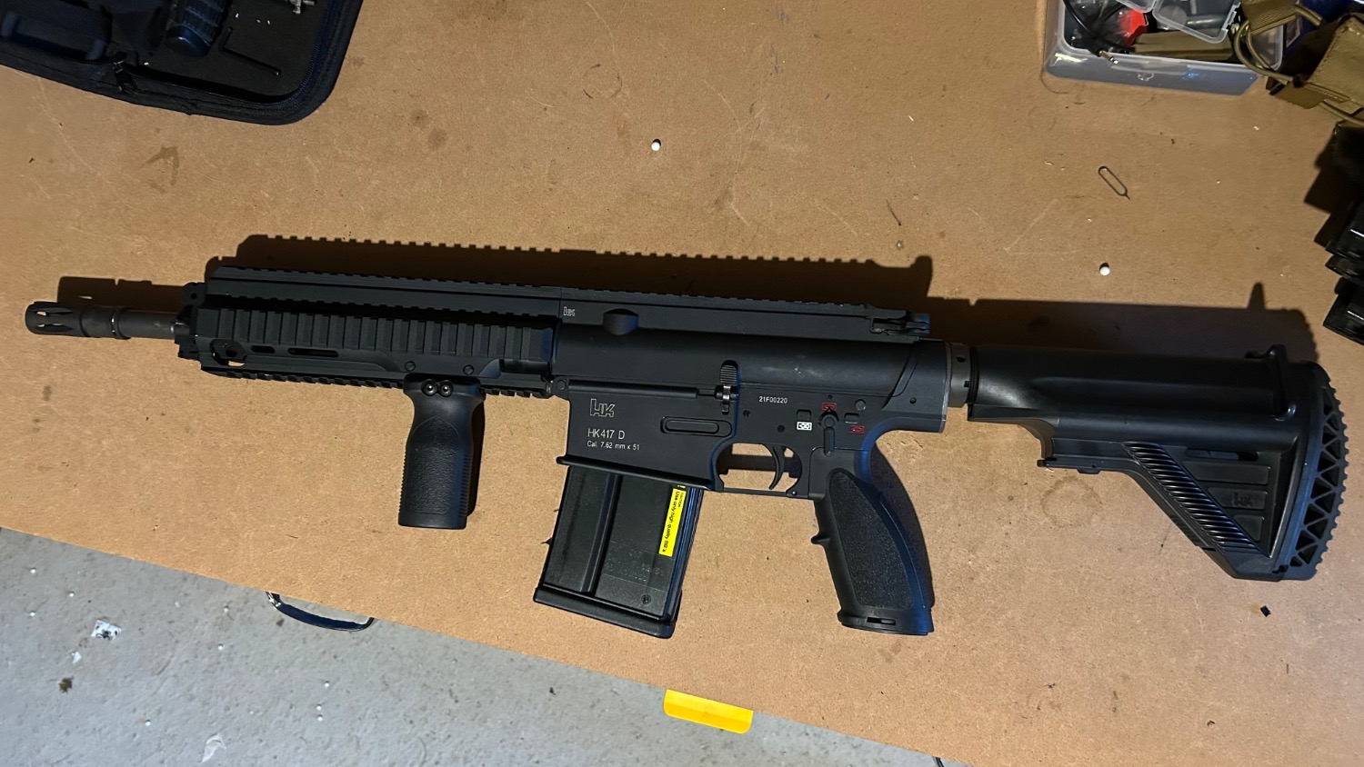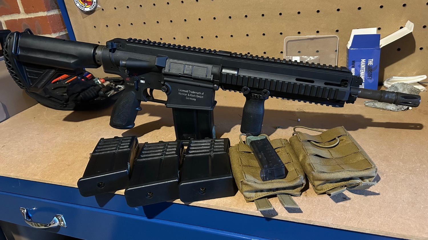 Includes 4 magazines, NPAS and hop Allen keys, speed loader and 2 HK417 Tasmanian Tiger magazine pouches.