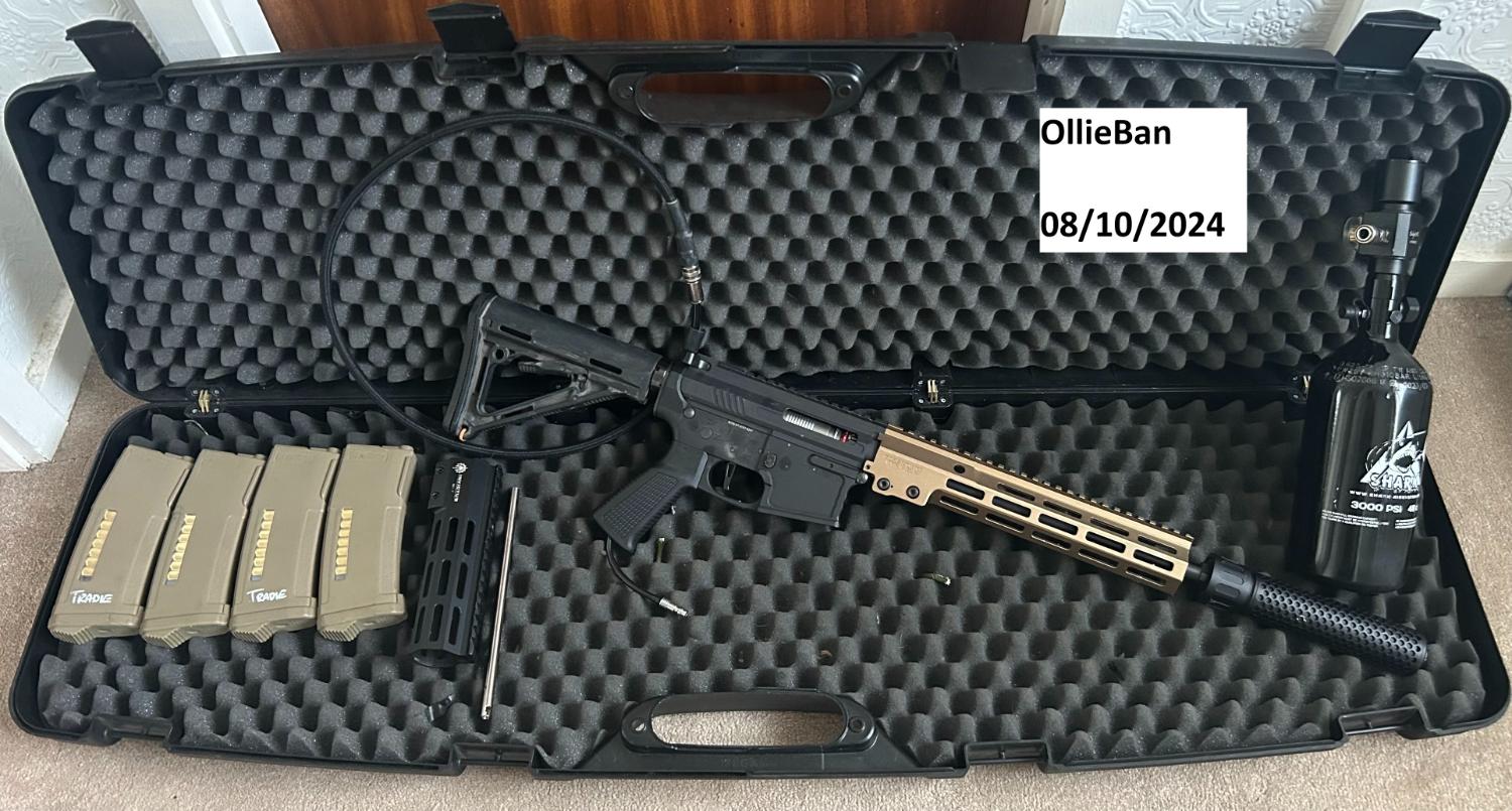 Orignially 7" now has URGI style handgaurd and longer 6.02 inner barrel fitted. Will also include Morpheus polished steel barrel and handguard to put back to stock. Has M4W hop unit and panthena concave nub. Basilisk reg, bottle and hose included. 2 batteries. KAC style QD suppressor. 4 epm 1 mags and rifle case included. £750 (plus postage but would rather meet or someone collect) or trade for MWS. contact me on whatsaoo 07738446669