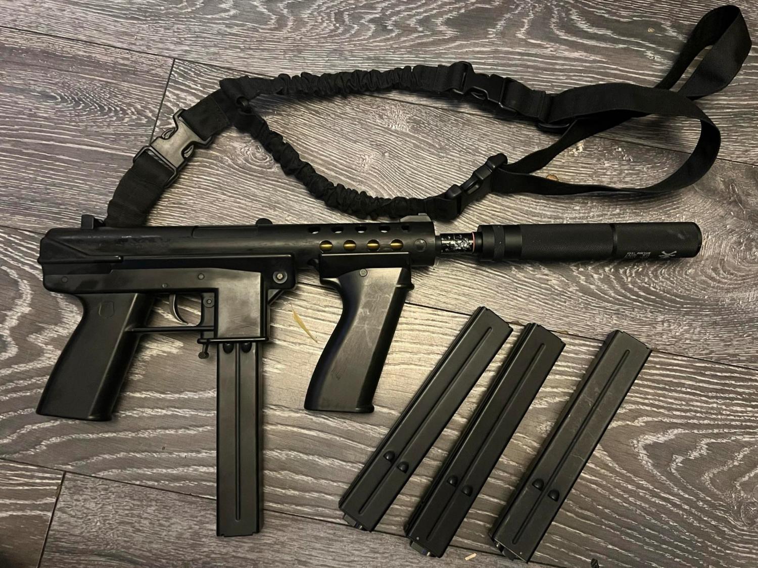 Echo one gat with extended barrel covered by mock suppressor 4 mags 2 mid cap 2 high cap and sling in good used condition