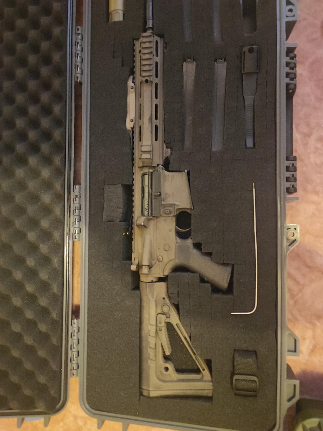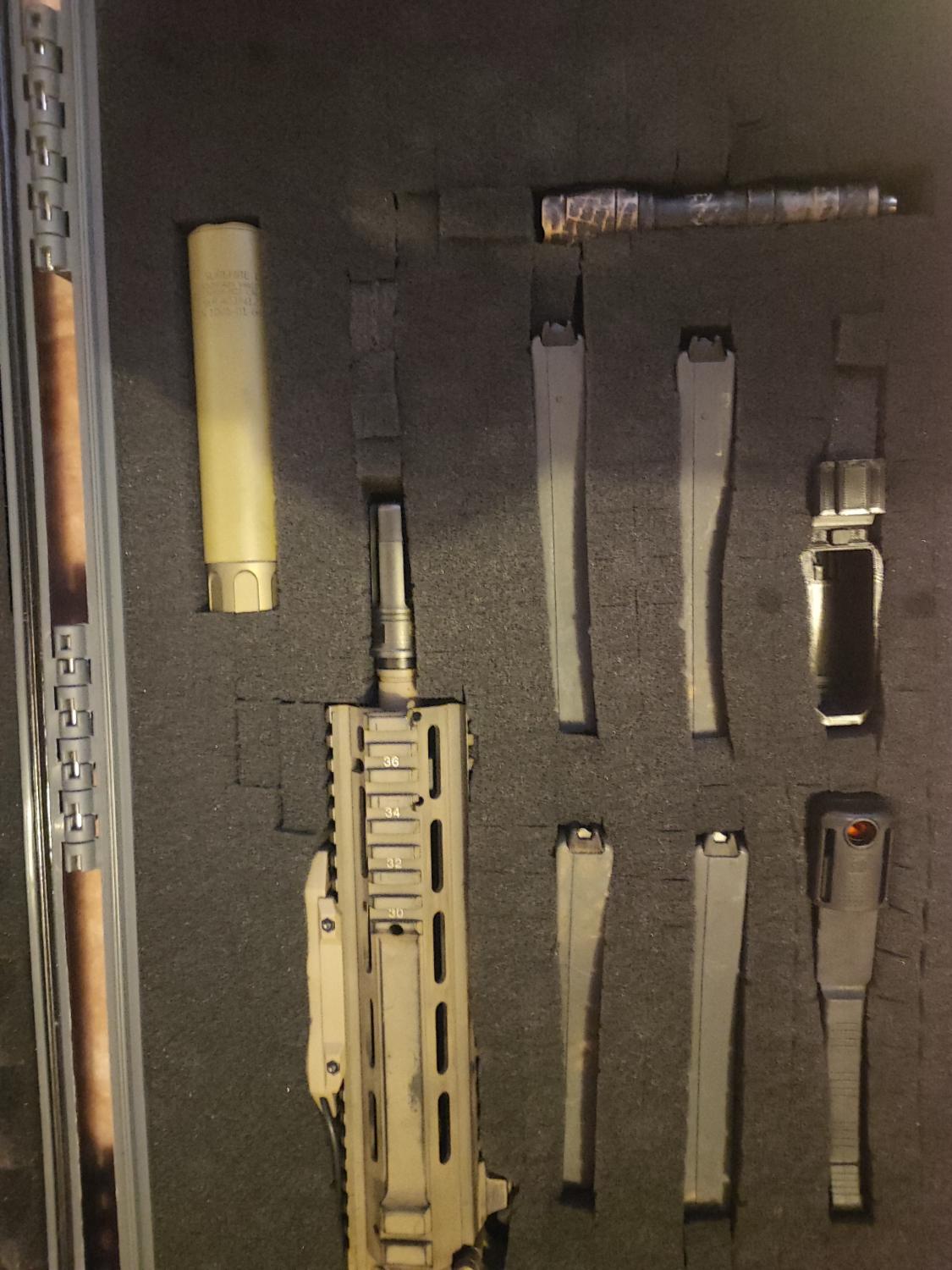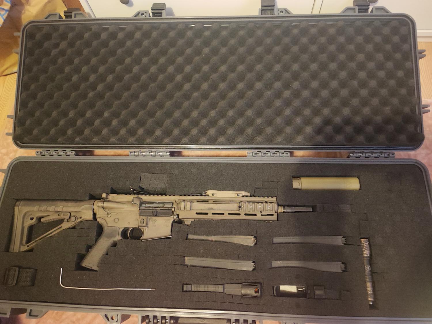 Includes 4x standard mags, 1x PTS mags, Included Odin adapter for speedloading, Surefire QD 556 Suppressor and flash hider, m600 replica torch.