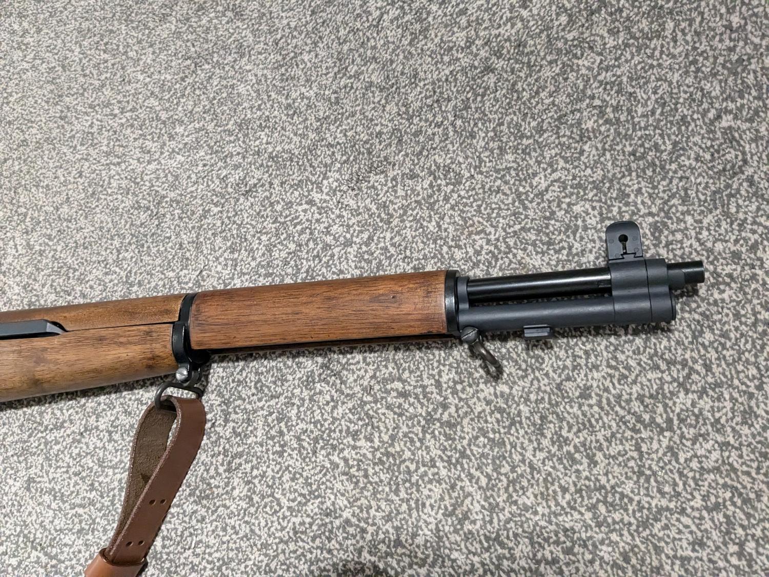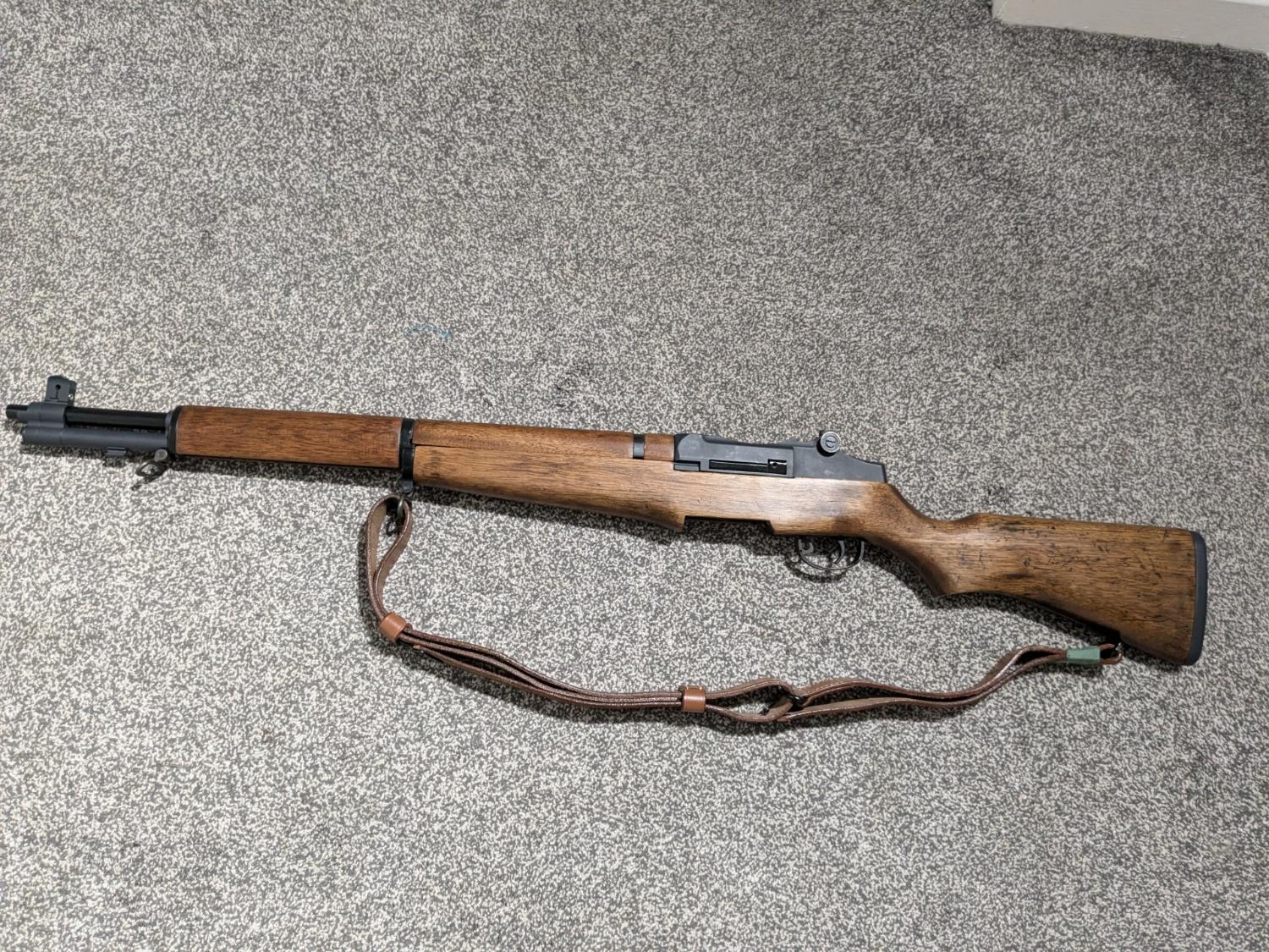 Here's my ICS M1 Garand AEG, sadly up for sale due to lack of use. It's in nice all round condition with some marks from use but cycles and shoots nicely. There's a blemish on the right hand side of the stock which is visible in certain light, which doesn't affect the handling or function of the replica. Earlier this year I gave the stock a light sanding and refinished with some walnut stain and beeswax which makes it look nicely aged. This appears to be an early model ICS M1 due to having the 'Springfield Armory' stamping on the heel of the receiver as opposed to the confusing 'Springdale Army' stamping seen on the later ones. Internally it's had the following mods: