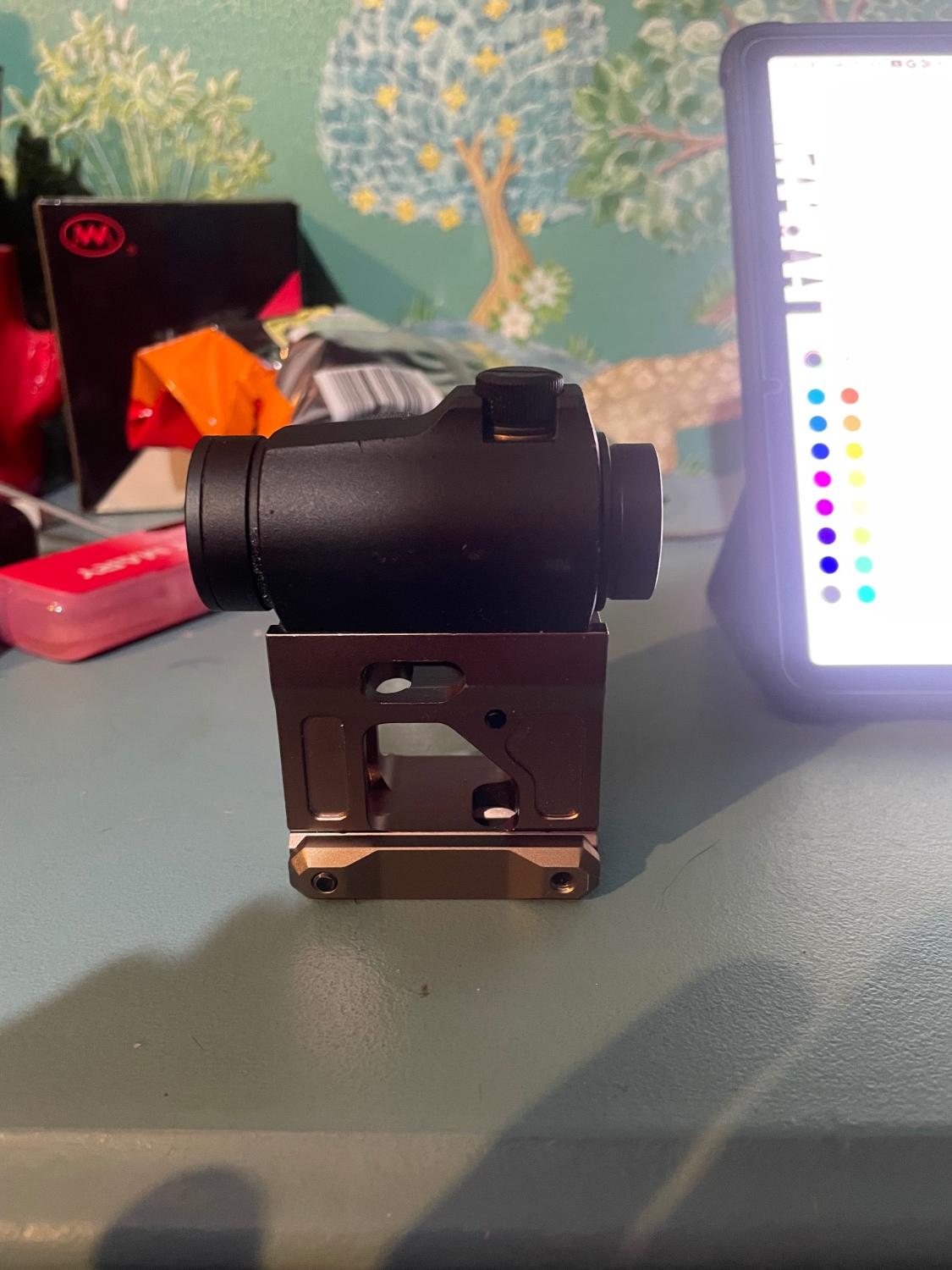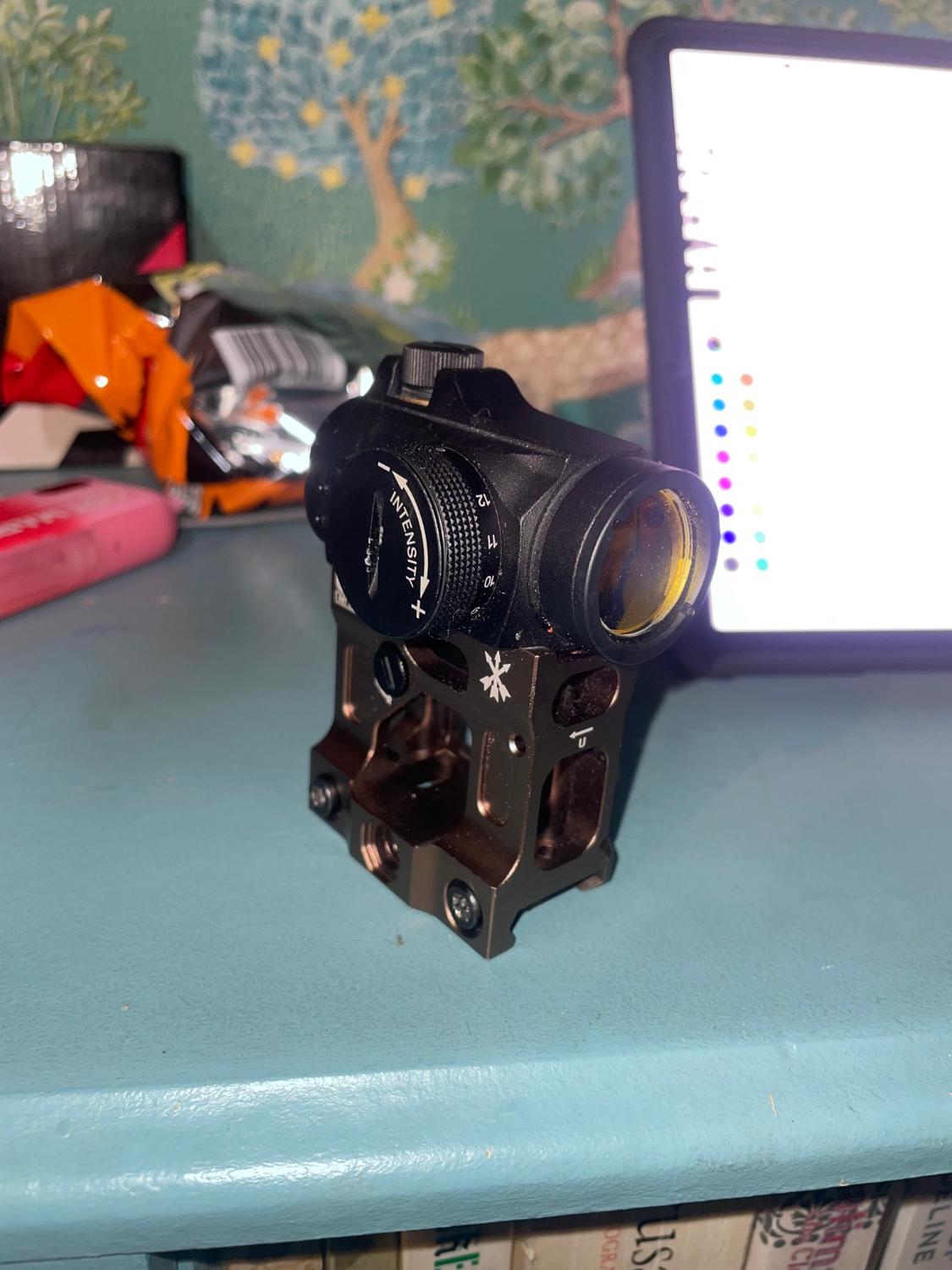 For sale is a holy warrior red dot with riser, all in good condition and working order just not my style. Any questions please ask!