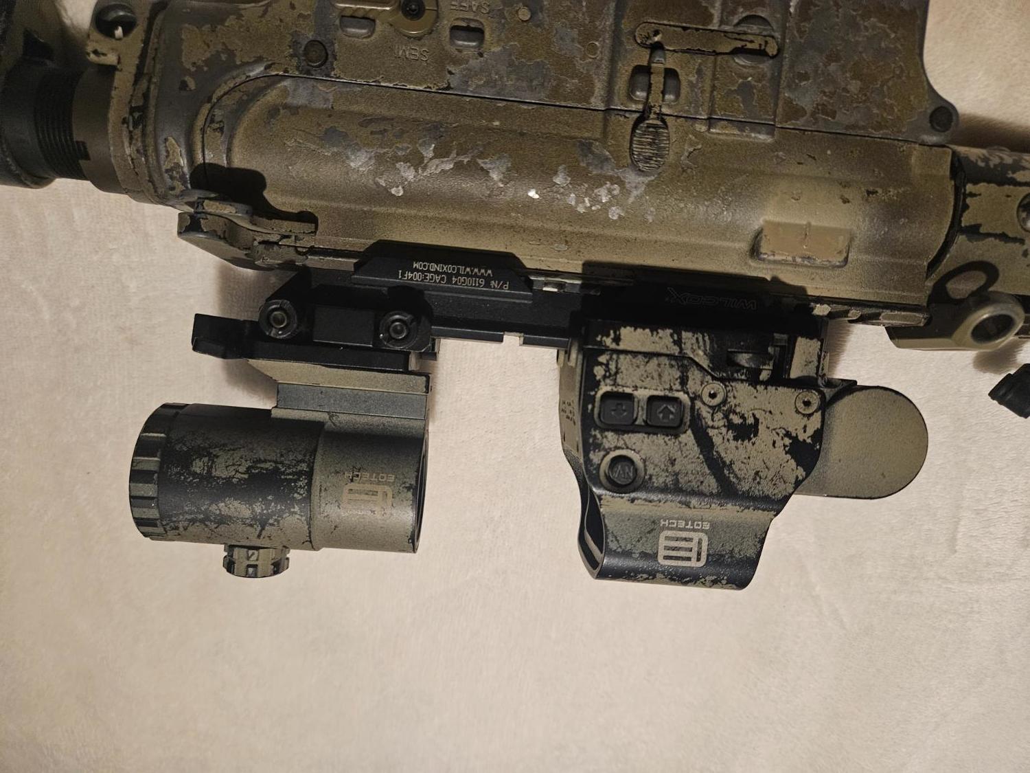 Replica eotech optic/magnifier included on rep wilcox mount. Original mount also included.