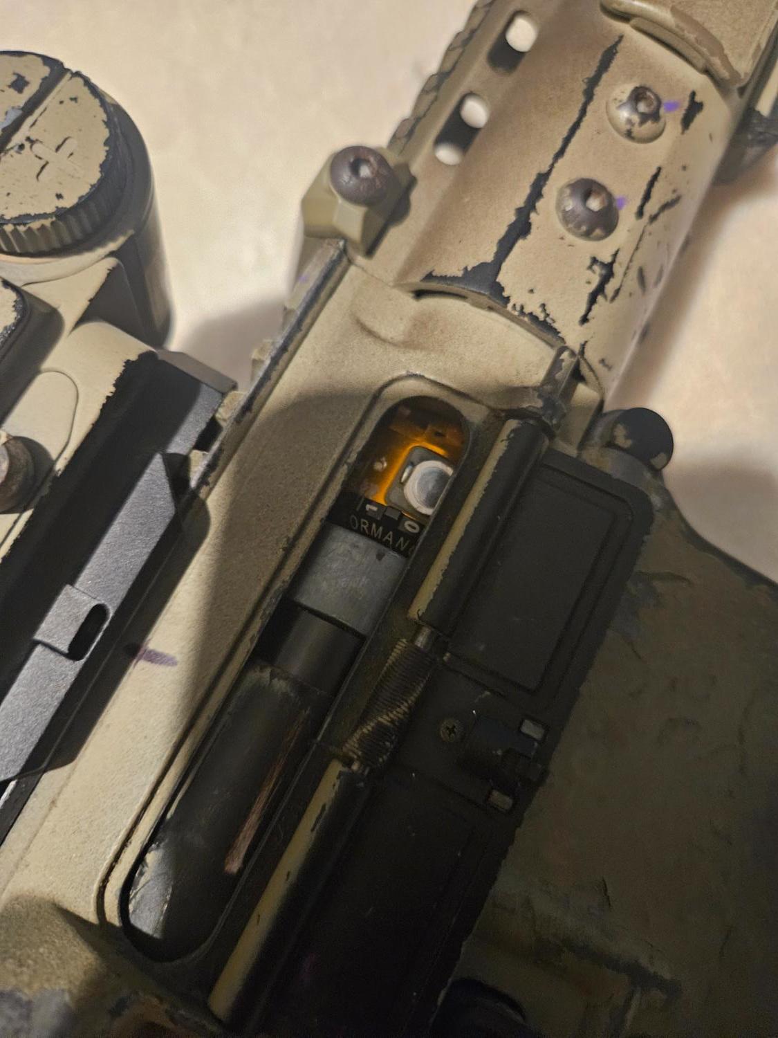 It should be noted that due to the gearbox arrangement, the safety does not work. The gun will fire in mode 1 (single shot) in "safe" and mode 2 (3 round burst) in "semi" and "auto".