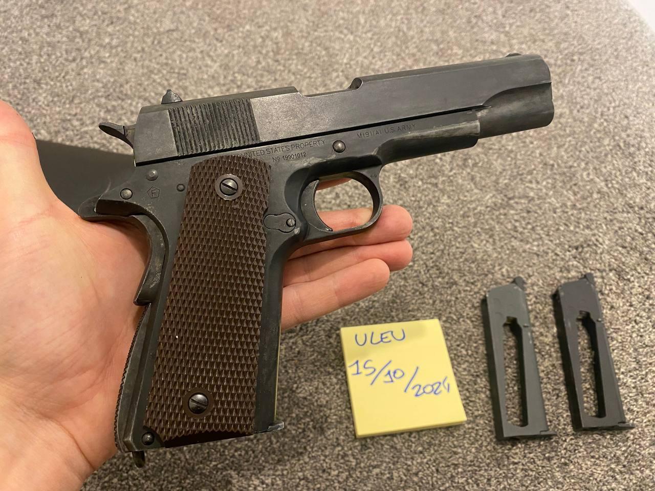KWC 1911 (M1911A1)- Refinished - 2 mags + Original US army leather holster