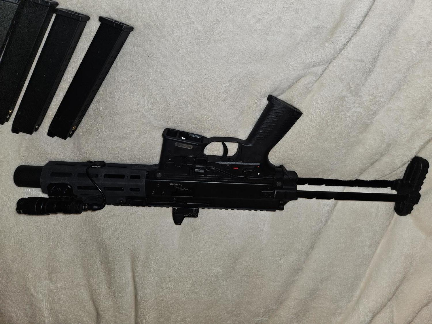 Internally the whole thing was stripped and relubed properly. Uprated recoil springs added and a buffer spring mod for rof and recoil. Also fitted a lambda 6.01 barrel, some of the best gbb barrels in my opinion. Snipetor unbridged rhop and stalker rhop sleeve bucking. Original barrel, bucking, and power up barrel for the suppressor will be included aswell as original box.