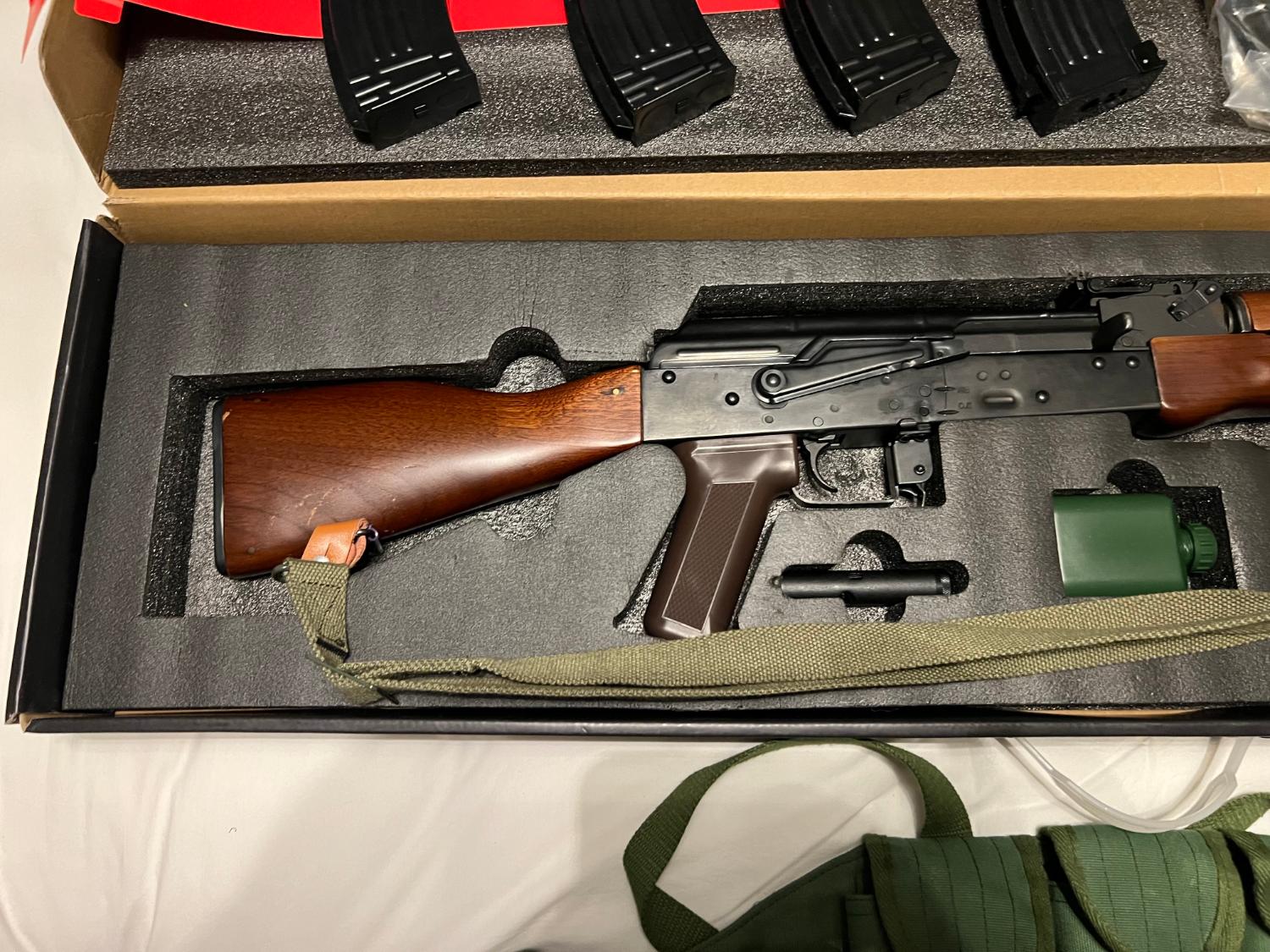 E&L AKM with 5 Magazines, 2 batteries, Chestrig and Sling.