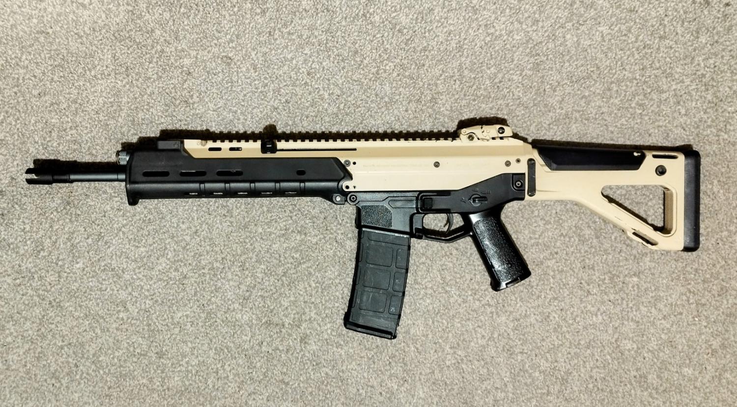 Magpul PTS Masada ACR AEG in black (some parts were painted TAN to have a nice dual tone)