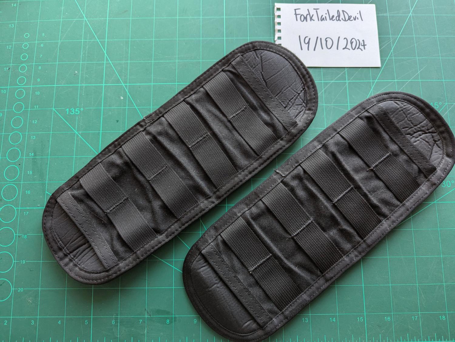 Pair of Blackhawk belt pads. Fairly early and rare bit of gear. Intended to act as adaptors on an LC2 or duty type belt. Reversable to allow mount of pouches vertically or horizontally (though slot for horizontal mounting seems slightly narrower so might have been meant for another type of strapping? Allows modernising some LBV/LBE equipment from late 90s early GWOT era.