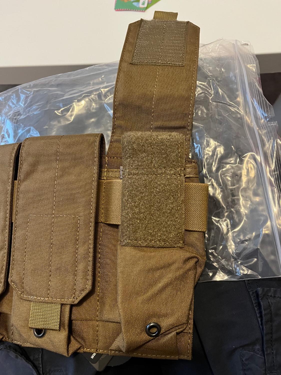 Velcro seal molle attachment mag pouch, listed as a triple mag pouch but the pouches are elasticated so you could squeeze six mags in.