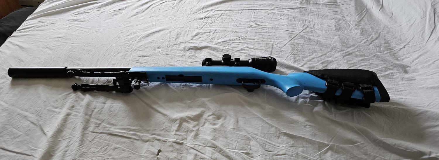 For reluctant sale my VSR-10 completly stock two toned working well. Roughly 20 mags through it. Comes with fairly decent metal bipod. Very good scope Novritsch 1-4x20 holds zero very well. Original box for rifle and scope Price includes postage.
