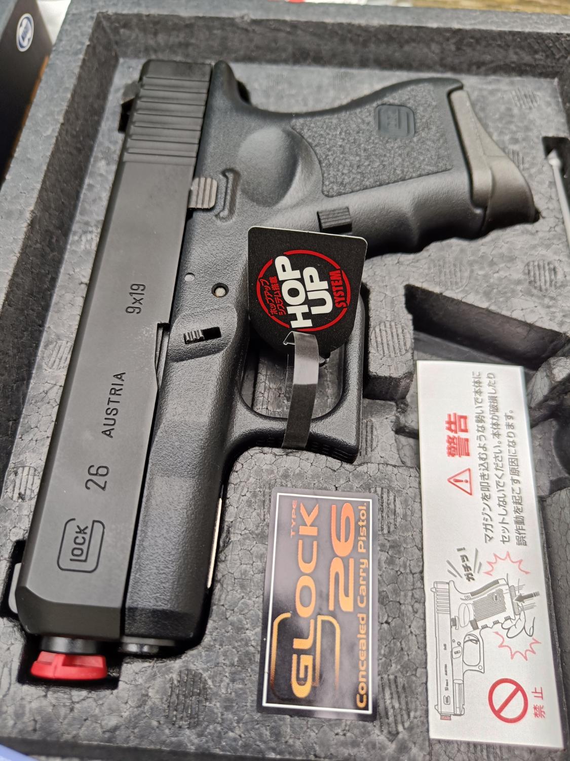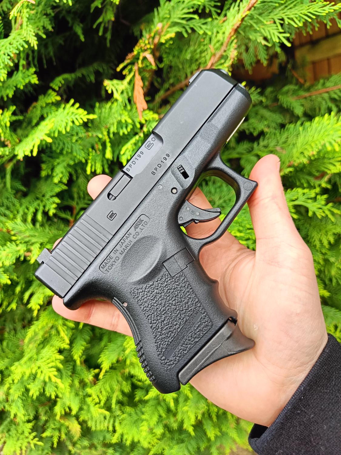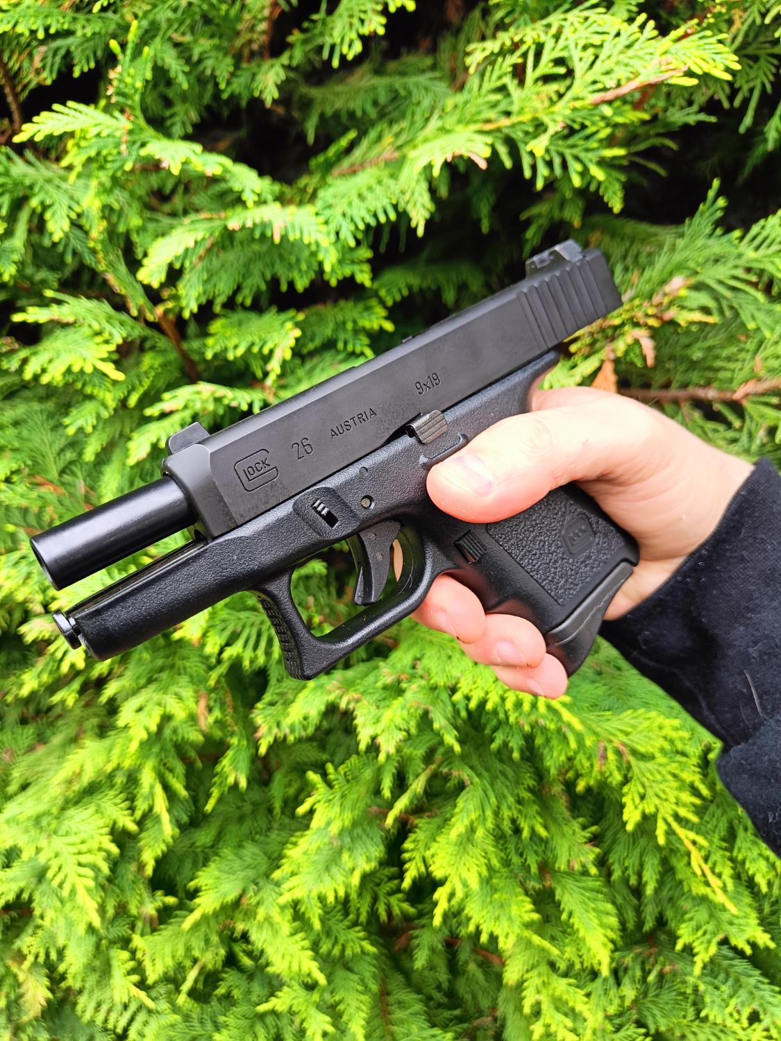 Fun fact, while many people assume this is a Gen.3 (like the original 17, 22 and 34), it is in fact a replica of the Gen.2.5 Glock 26. It has finger grooves but they're smooth and not checkered like the Gen.3.