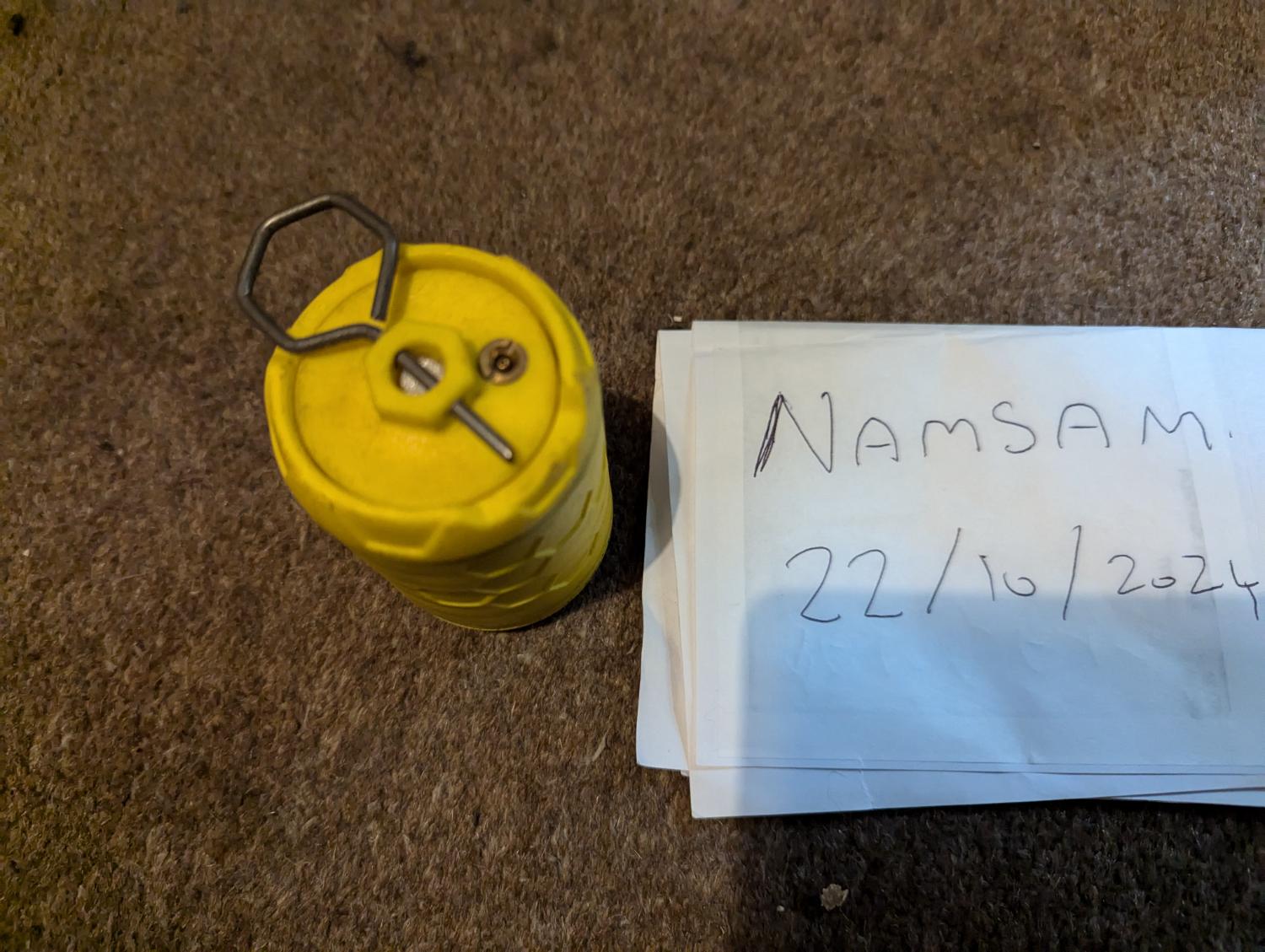 Bought before I got my Dynatex and does not get used. It's a Gas Impact grenade that filled with bbs and spins when hits the ground firing out the bbs. Good cheap way into impact grenades