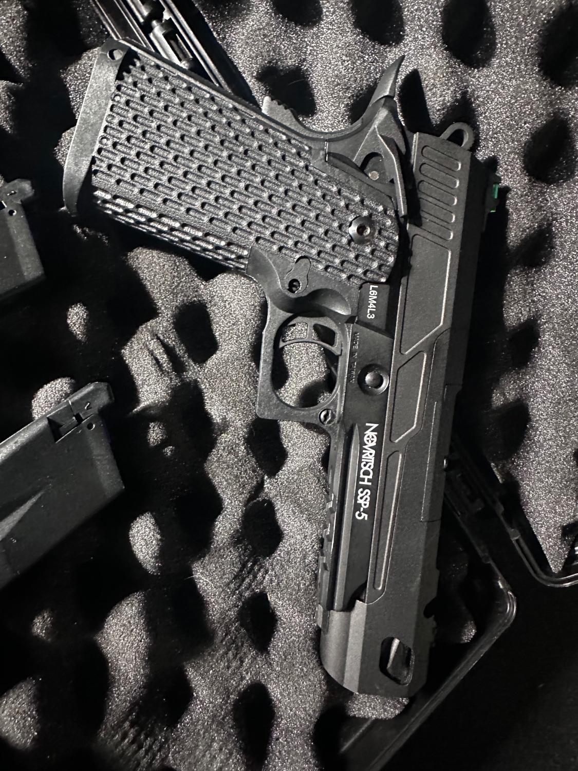 Works like a dream. I am selling as i have a few pistols . Comes with 4 mags and a olight valkyrie. Thanks
