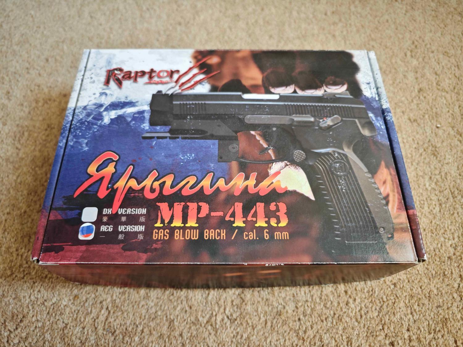 Never skirmished Raptor MP-443 Grach. Gen 1 with V3 upgrade kit installed, plus spare o-rings. I have never managed to make this thing work, but maybe you will have better luck. Full metal construction, feels hefty and chunky in the hand.